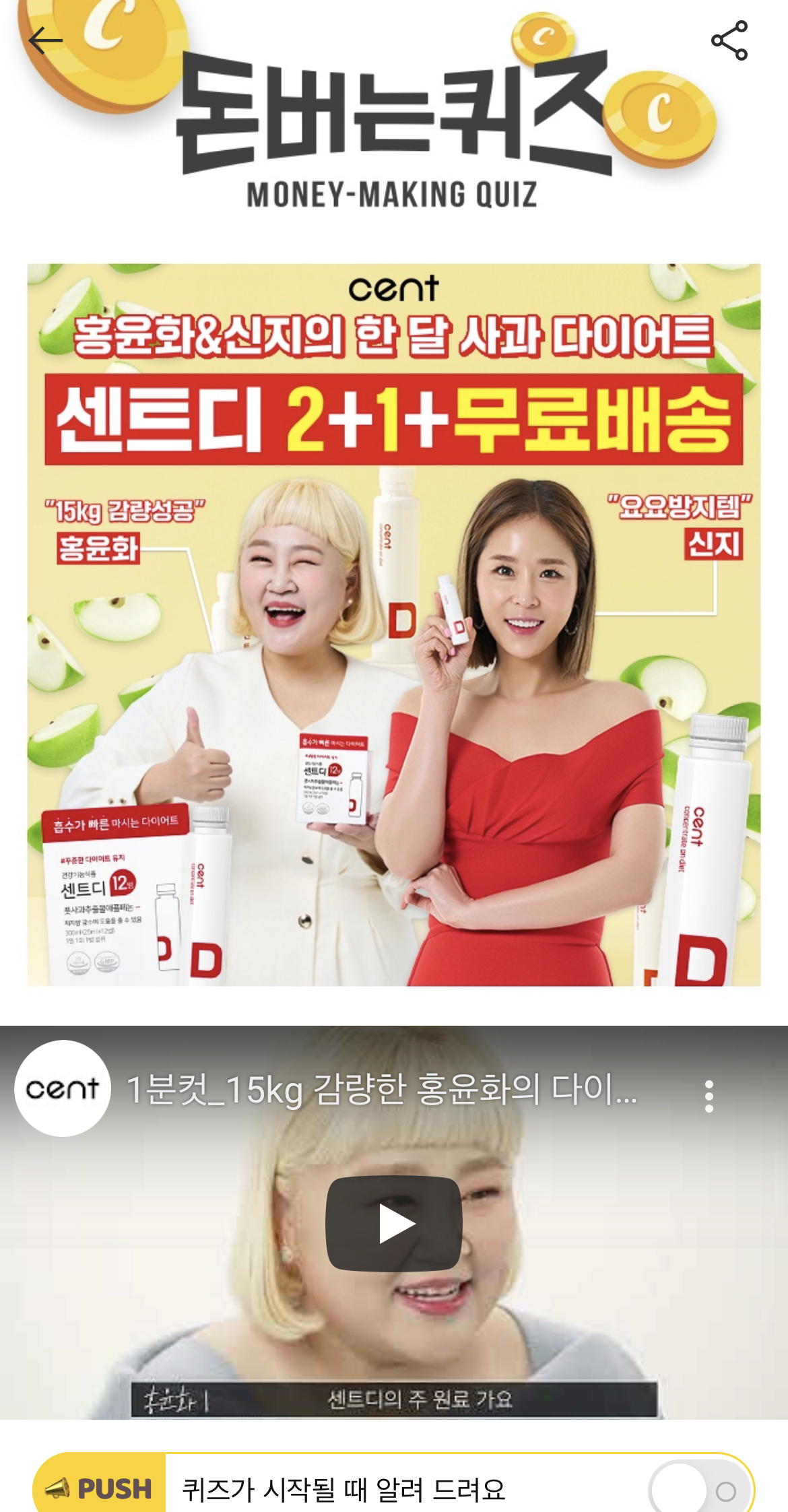 캐시워크 돈버는 퀴즈 정답 풋사과다이어트 센트디 숫자