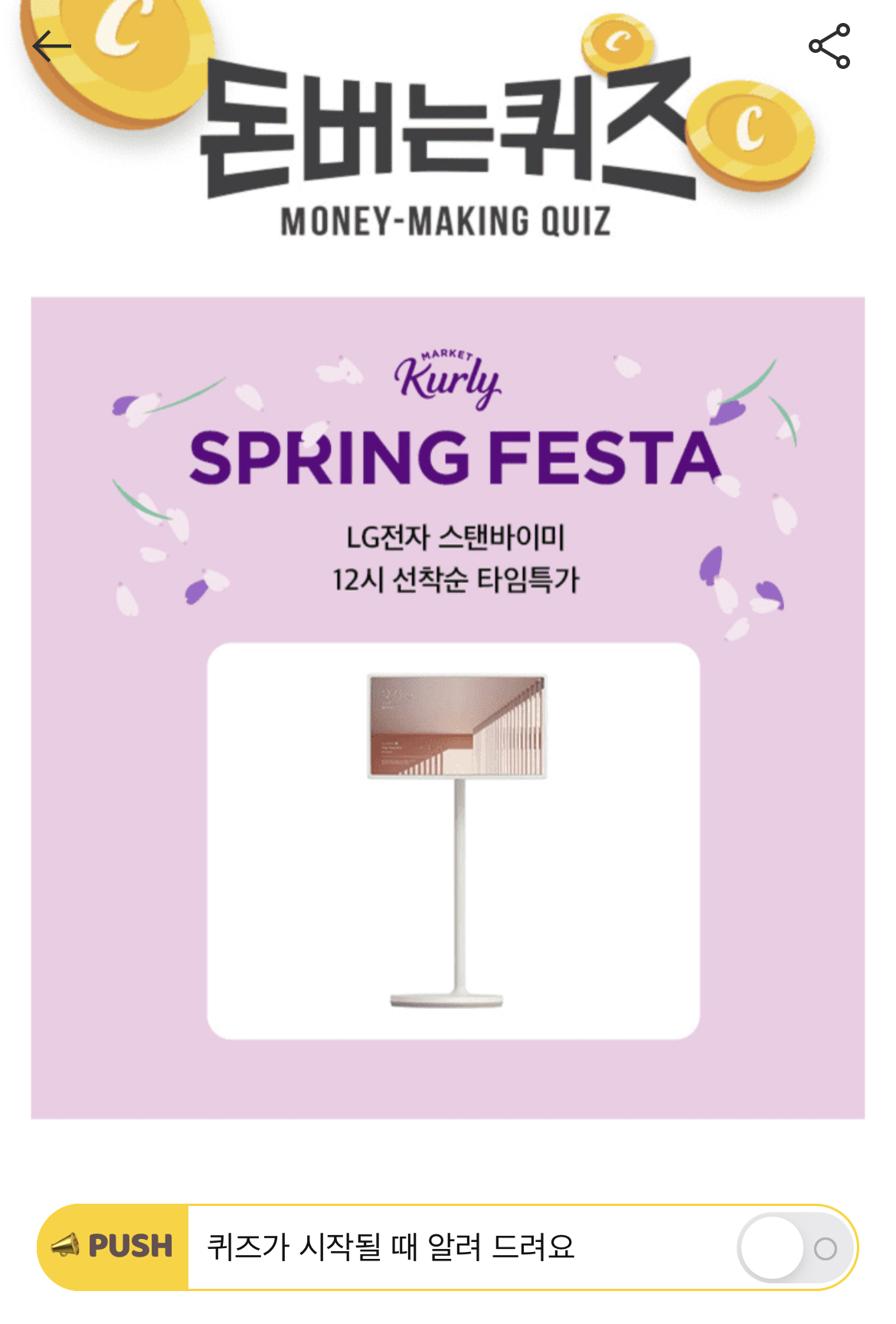 캐시워크 돈버는 퀴즈 정답 마켓컬리 선착순 파격 특가 숫자