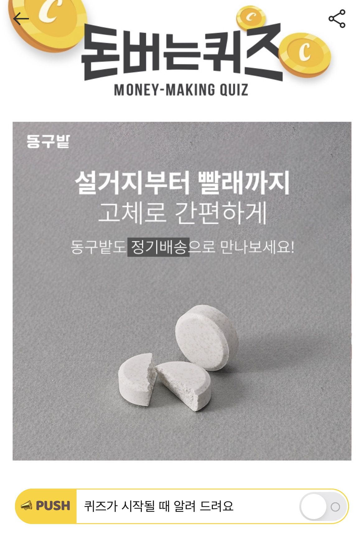 캐시워크 돈버는 퀴즈 정답 동구밭 네이버 정기배송
