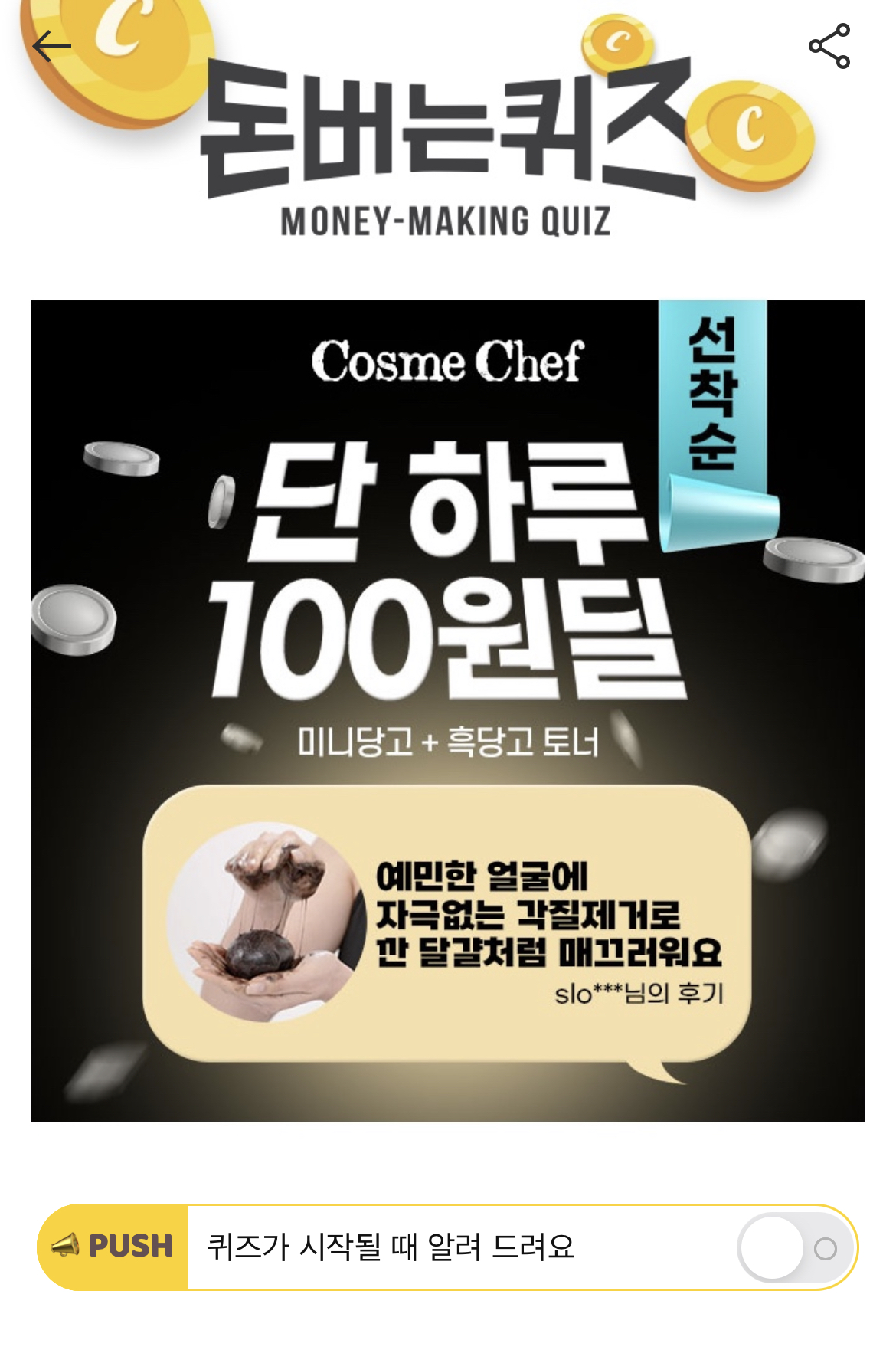 캐시워크 돈버는 퀴즈 정답 코스메쉐프 ㅎㄷㄱ
