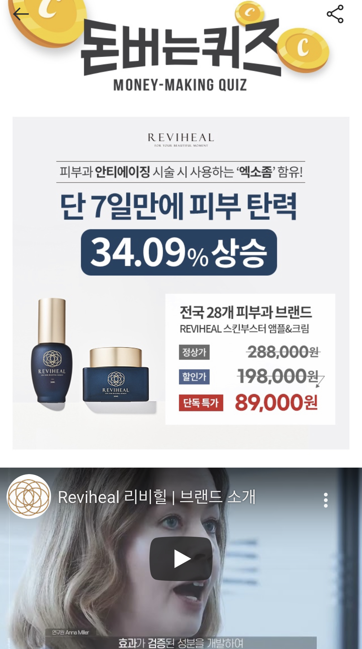 캐시워크 돈버는 퀴즈 정답 리비힐 스킨부스터 앰플&크림 숫자