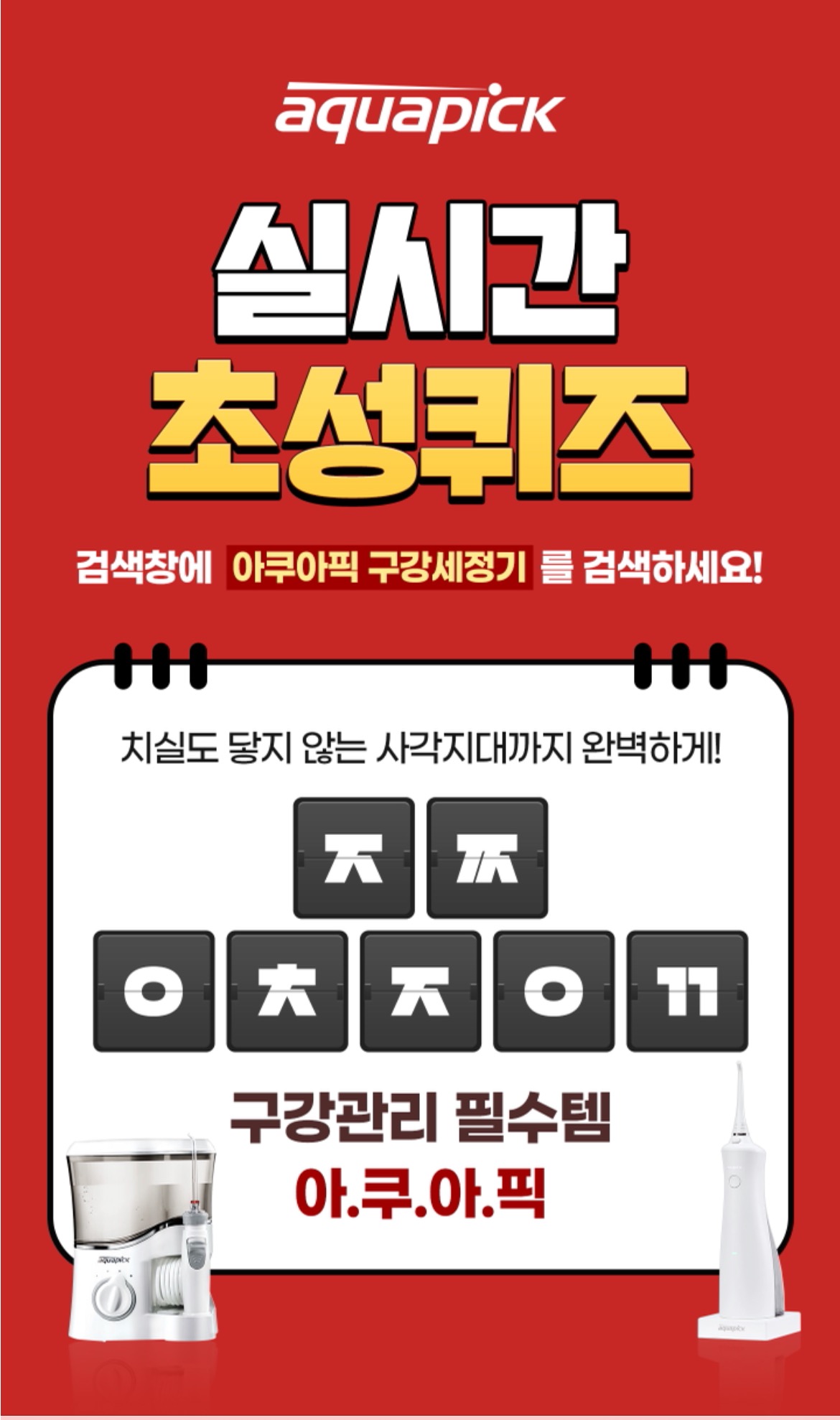 캐시슬라이드 실시간 초성퀴즈 아쿠아픽 구강세정기 정답 ㅈㅉㅇㅊㅈㅇㄲ