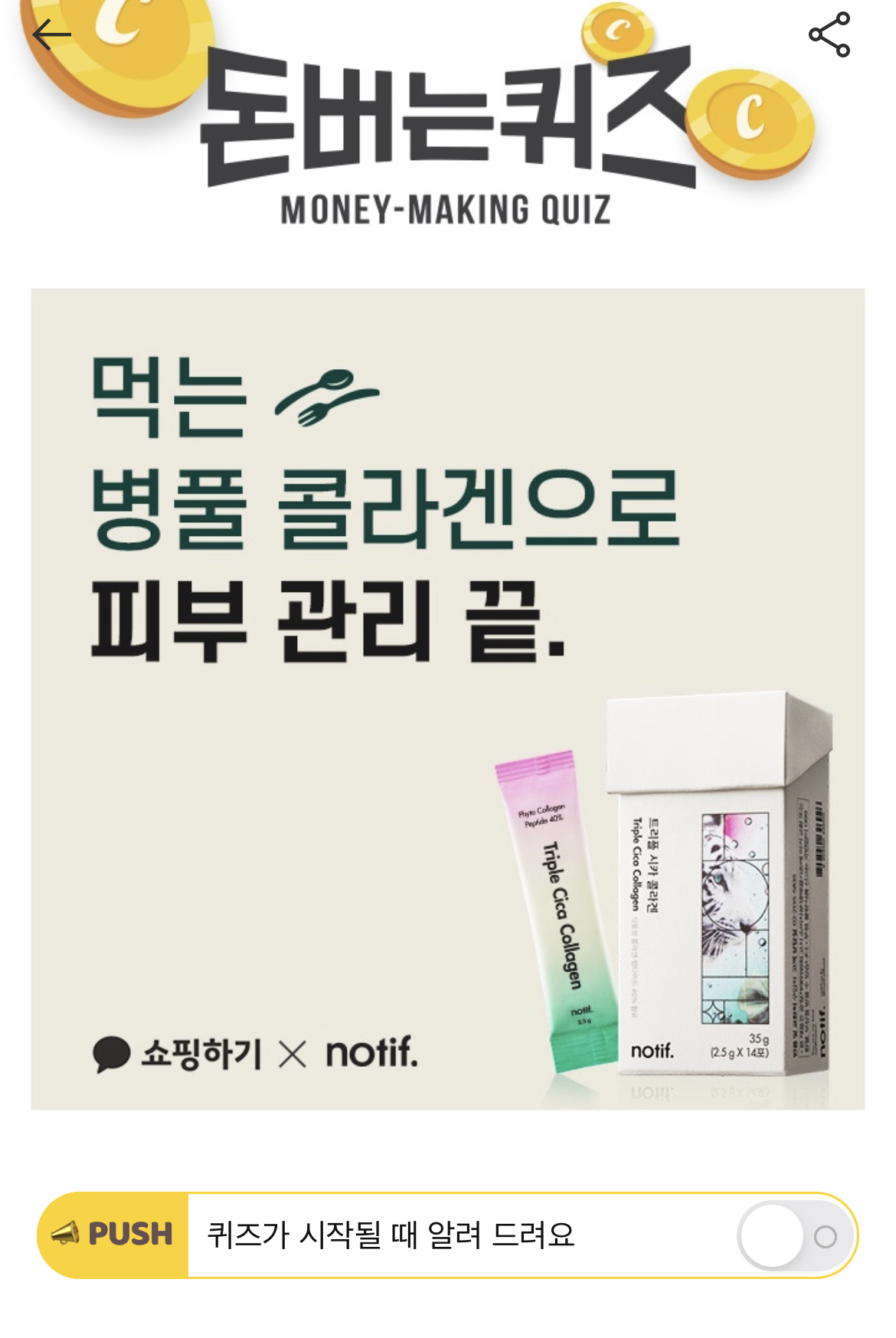 캐시워크 돈버는 퀴즈 정답 노티프 병풀 콜라겐