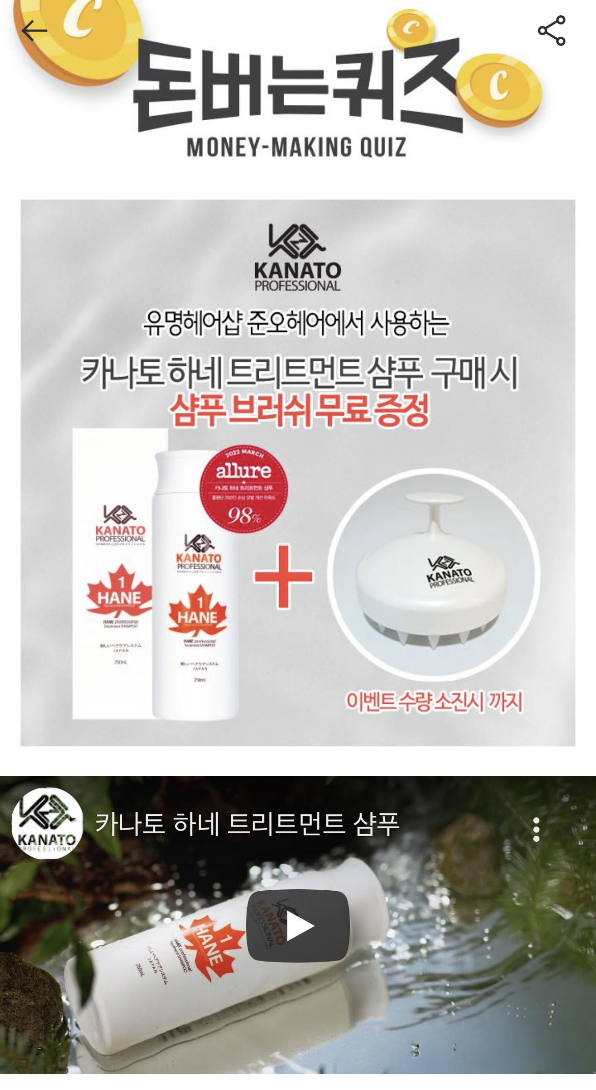 캐시워크 돈버는 퀴즈 정답 카나토 하네 트리트먼트 샴푸 ㅇㅌㅋㅇ