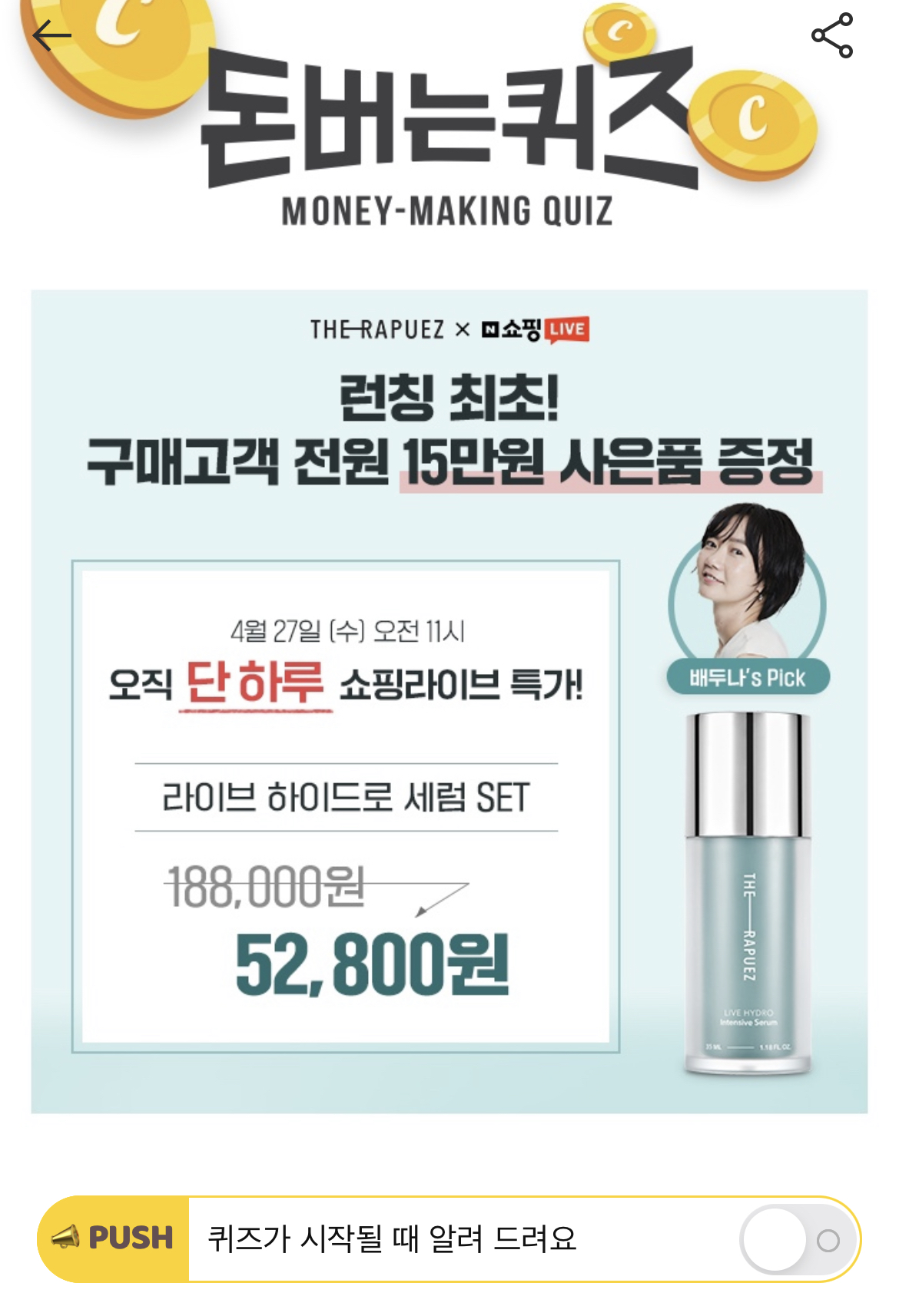 캐시워크 돈버는 퀴즈 정답 더라퓨즈 OOO 하이드로 라인 제품 ㄹㅇㅂ
