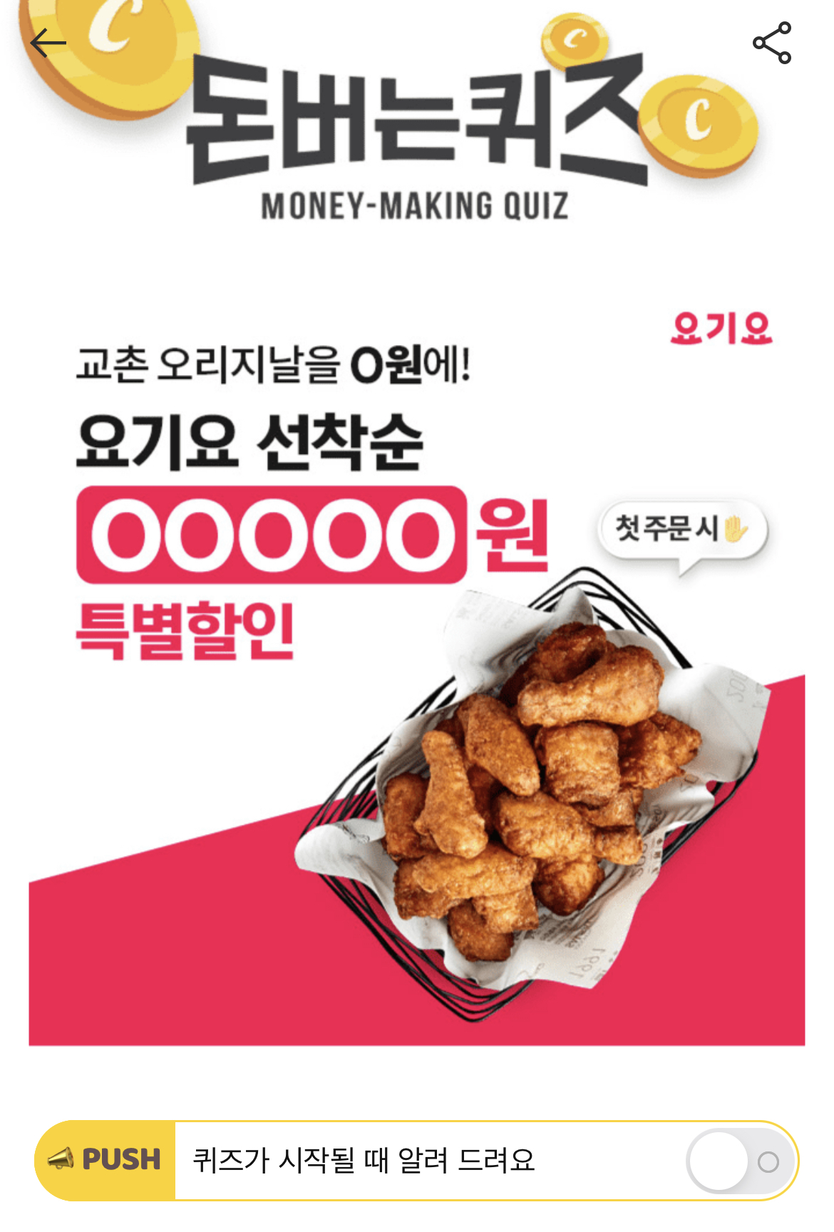 ※ 요기요 앱 설치 후 정답을 맞혀보세요.