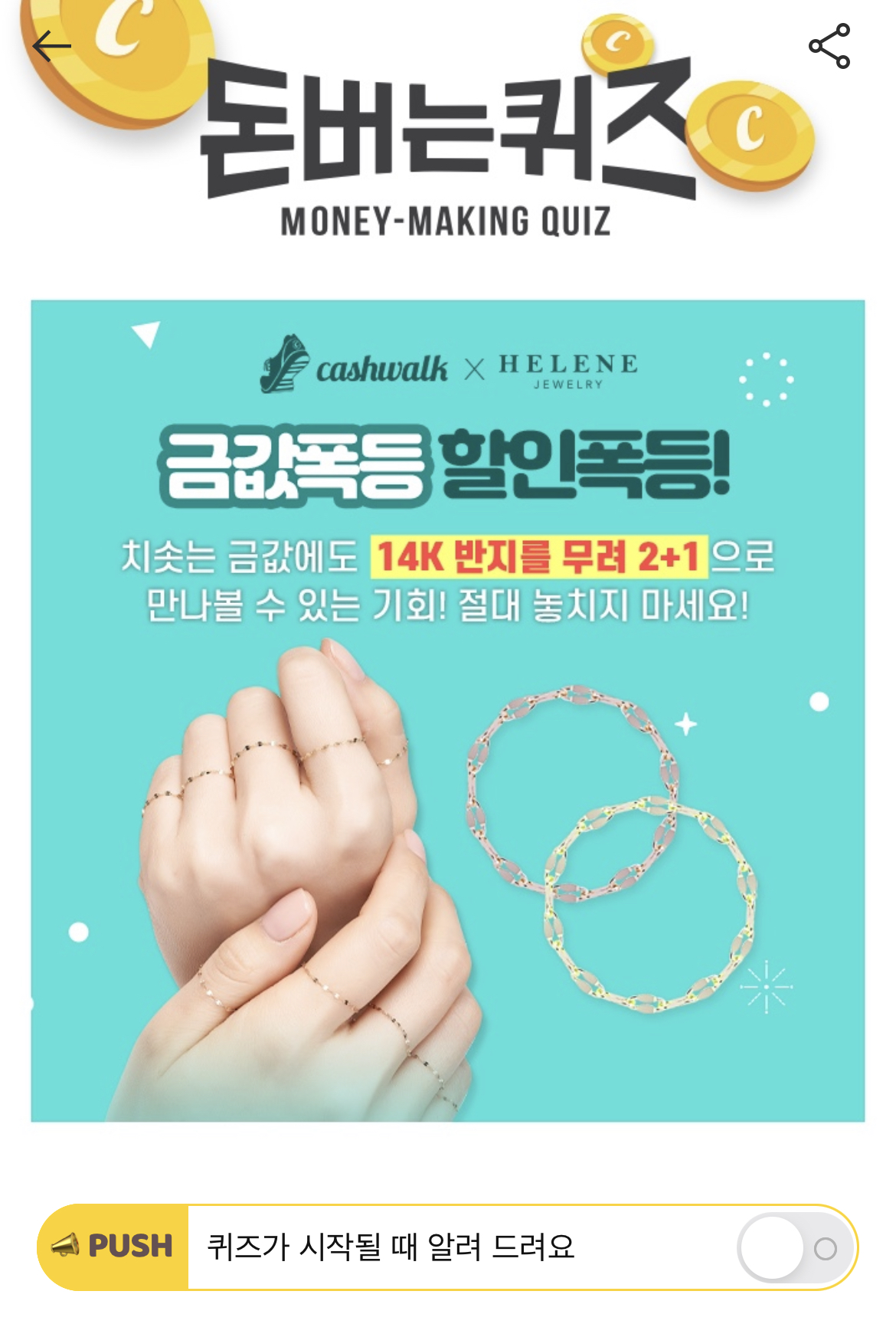 캐시워크 돈버는 퀴즈 정답 엘렌쥬얼리 베스트 셀러 10글자