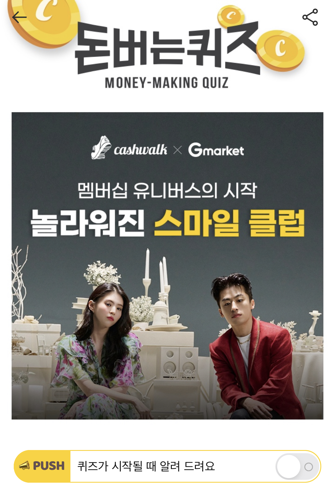캐시워크 돈버는 퀴즈 정답 G마켓 스마일클럽 혜택