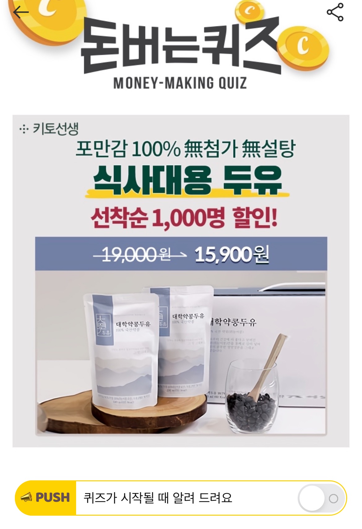 캐시워크 돈버는 퀴즈 정답 키토선생 대학약콩두유 후기