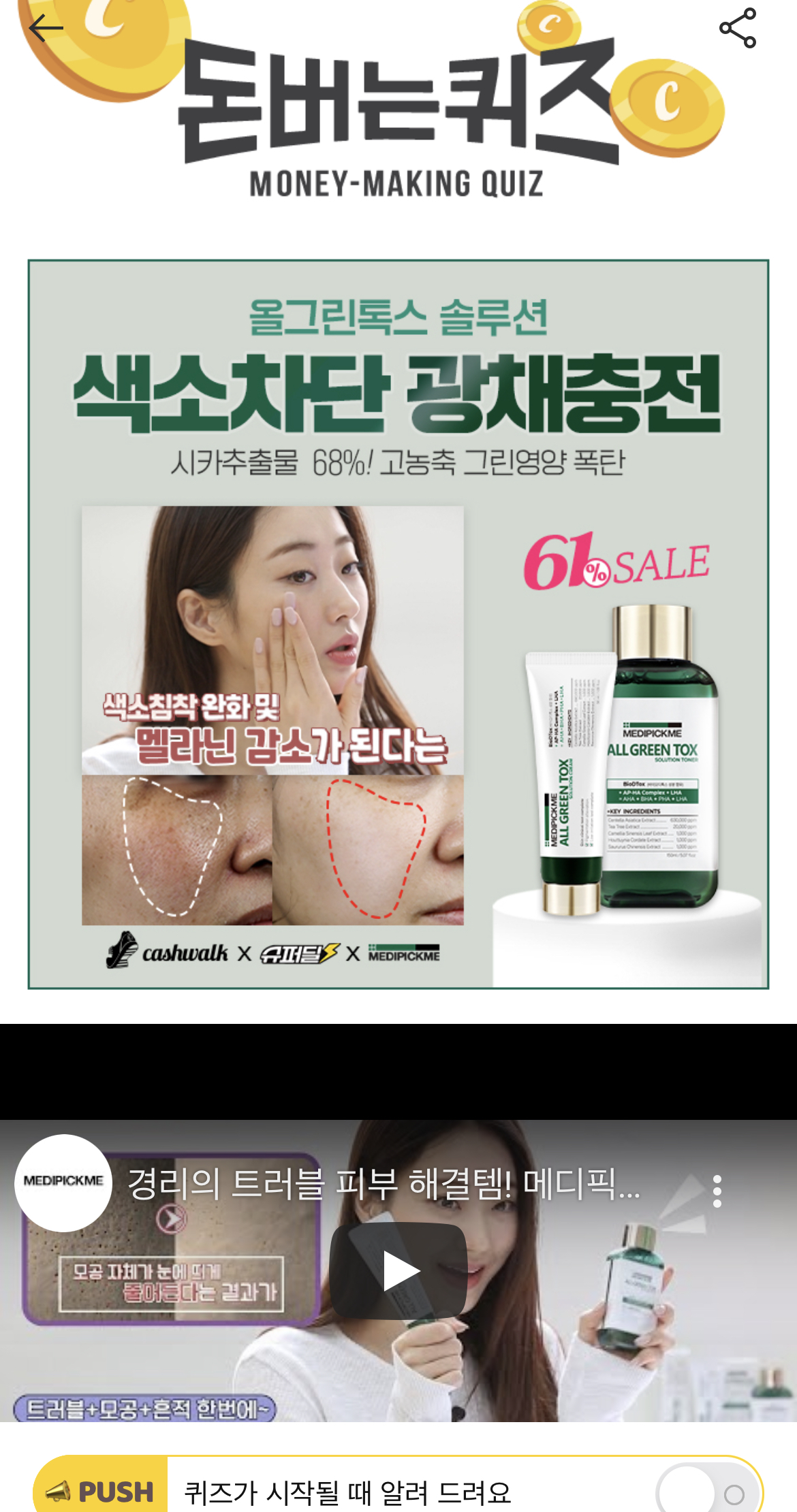 캐시워크 돈버는퀴즈 정답 올그린톡스 솔루션 성분