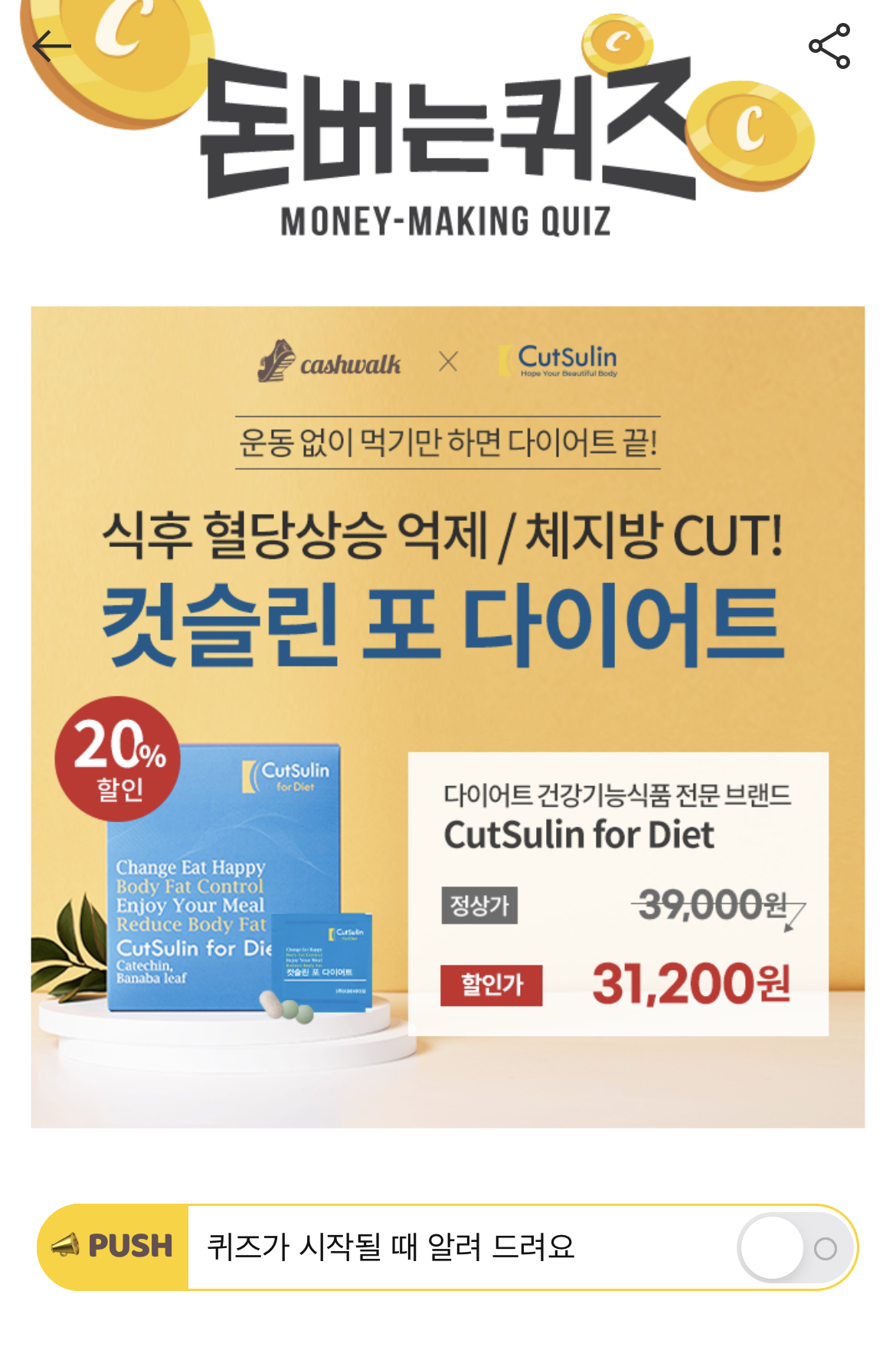 캐시워크 돈버는퀴즈 정답 컷슬린 포 다이어트 단어