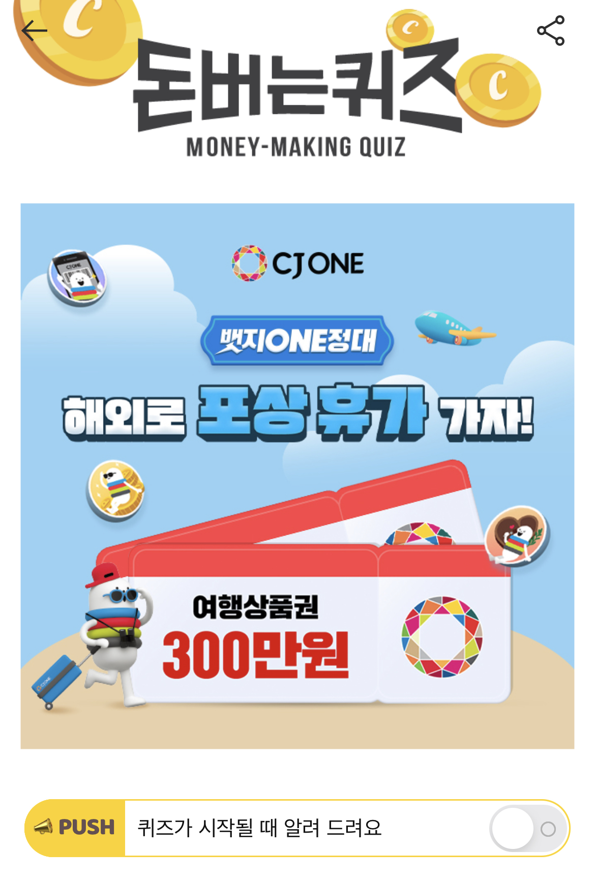 캐시워크 돈버는퀴즈 정답 CJONE ㅂㅈㅁㅅㅅㅎ