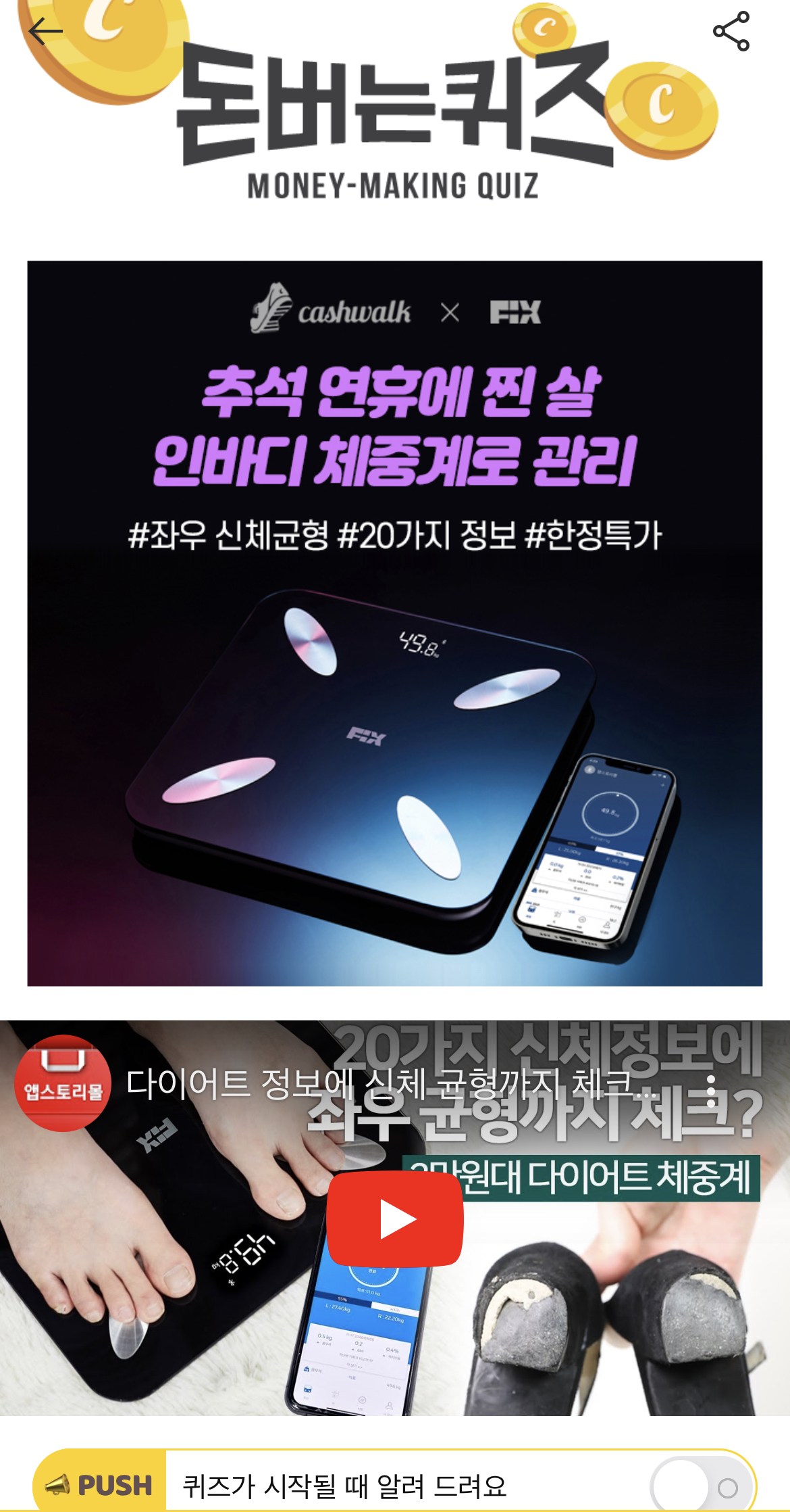캐시워크 돈버는 퀴즈 정답 픽스 밸런스 인바디 체중계 XSC-102 ㅁㅌㅍㄷ