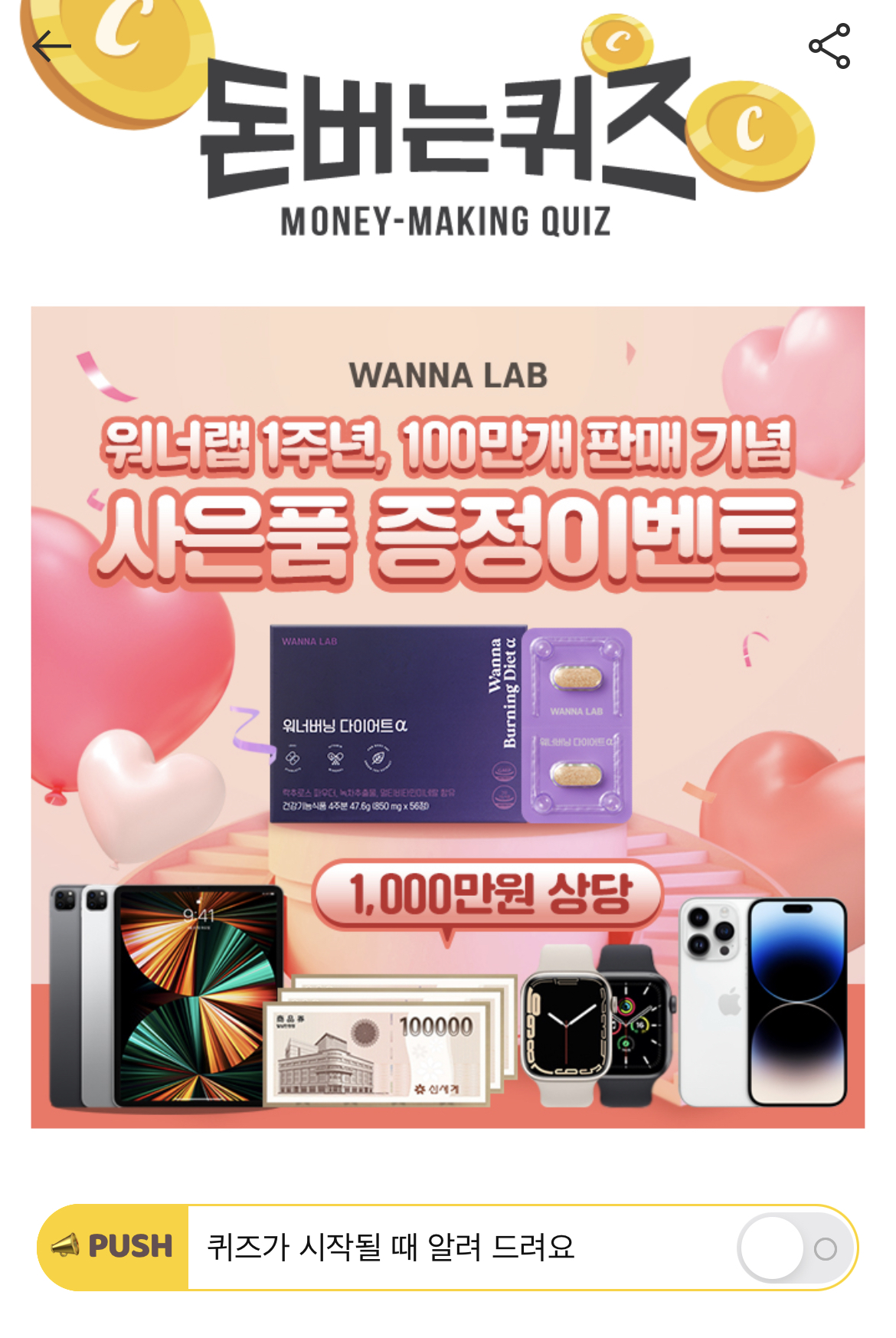 캐시워크 돈버는퀴즈 정답 워너버닝알파 주원료 ㄹㅊㄹㅅㅍㅇㄷ