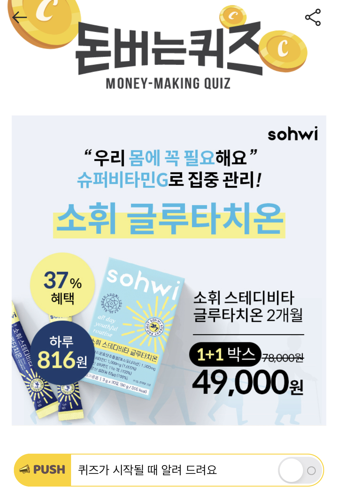 캐시워크 돈버는퀴즈 정답 소휘 글루타치온 영국 DSM사 프리미엄 원료 단어