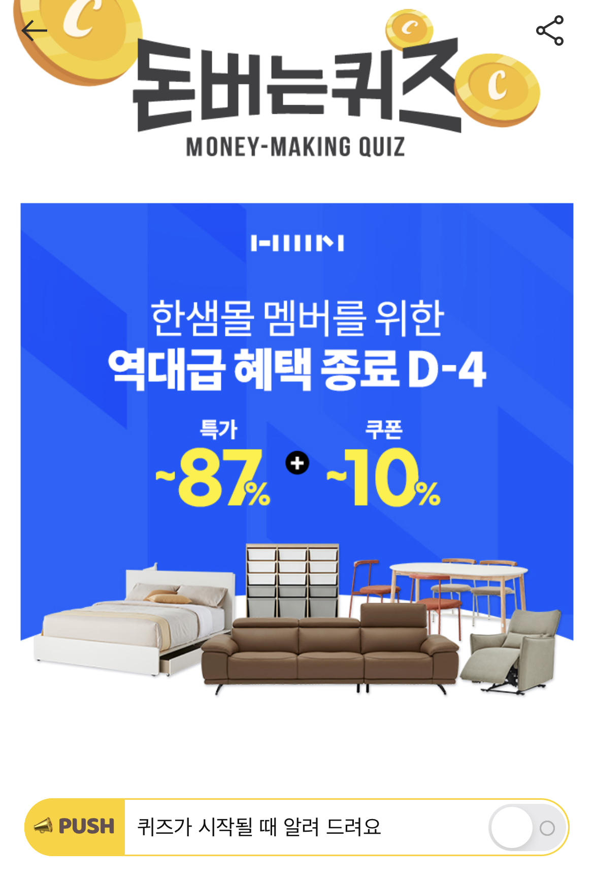 캐시워크 돈버는 퀴즈 정답 한샘몰 OOO 창고대개방 ㅅㅋㄹ