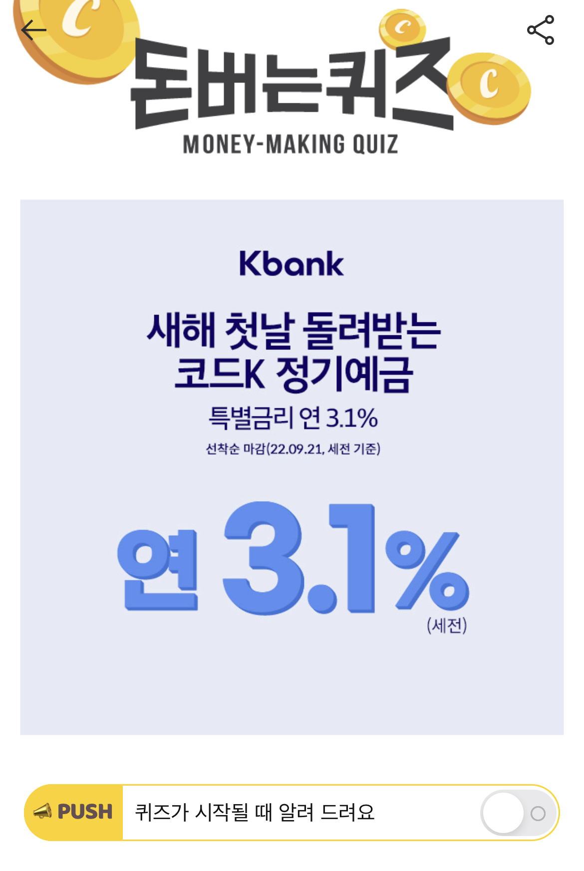 캐시워크 돈버는퀴즈 정답 kbank 코드K 정기OO ㅇㄱ