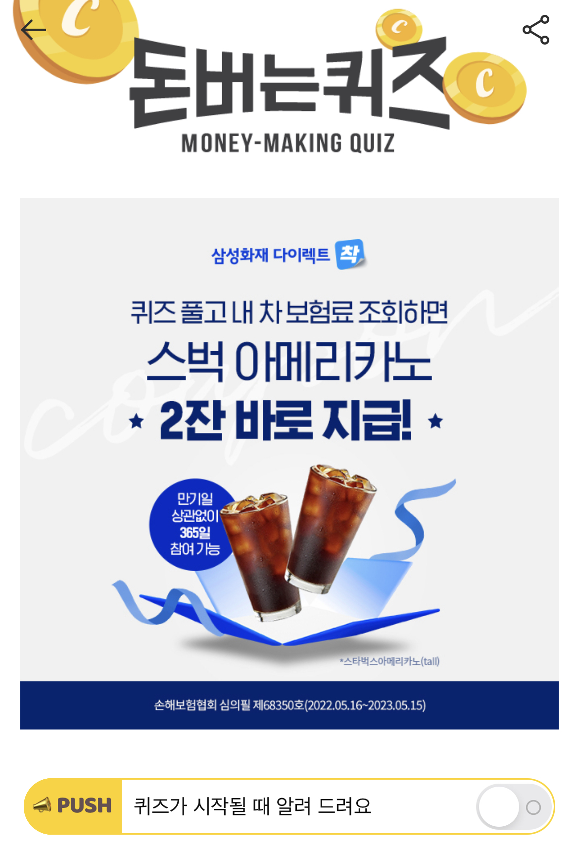 캐시워크 돈버는퀴즈 정답 삼성화재 다이렉트 자동차보험