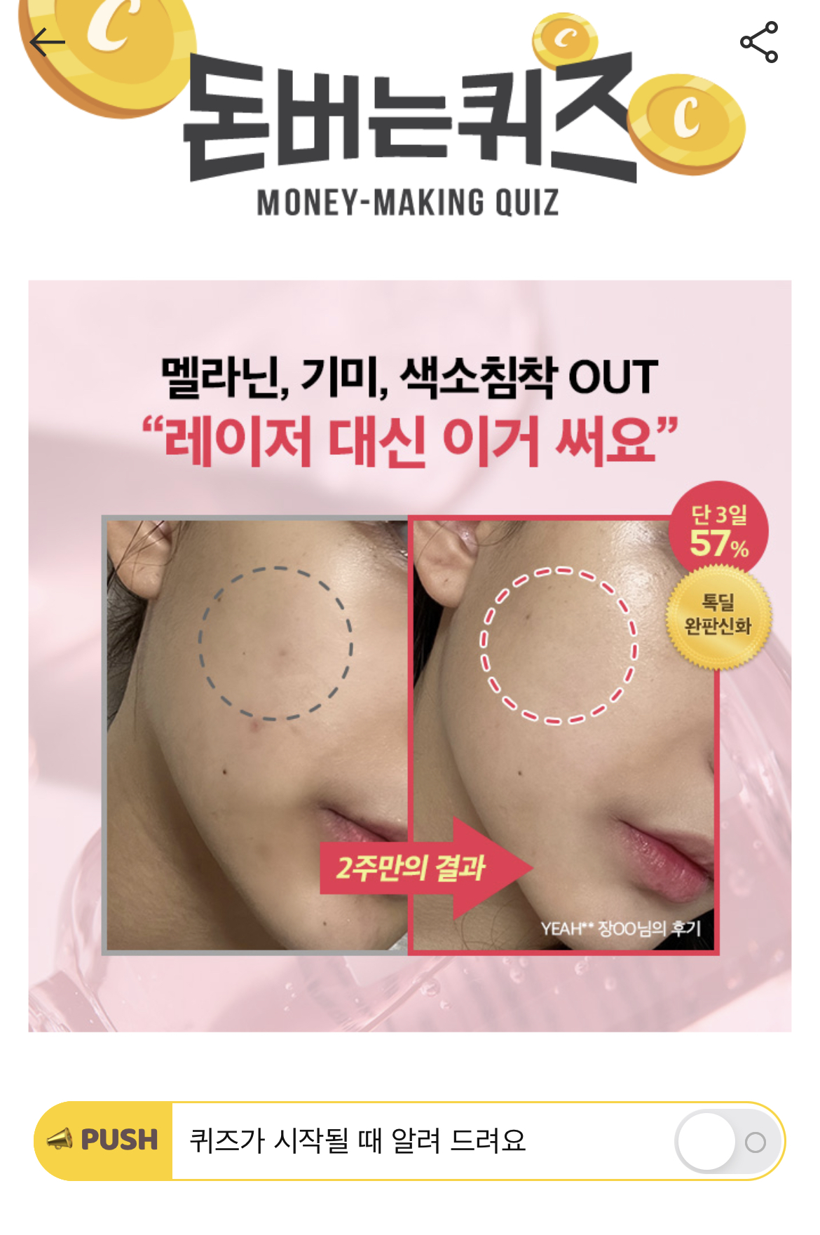 캐시워크 돈버는퀴즈 정답 레이저대신이거 세럼 레스베라트롤 성분 단어