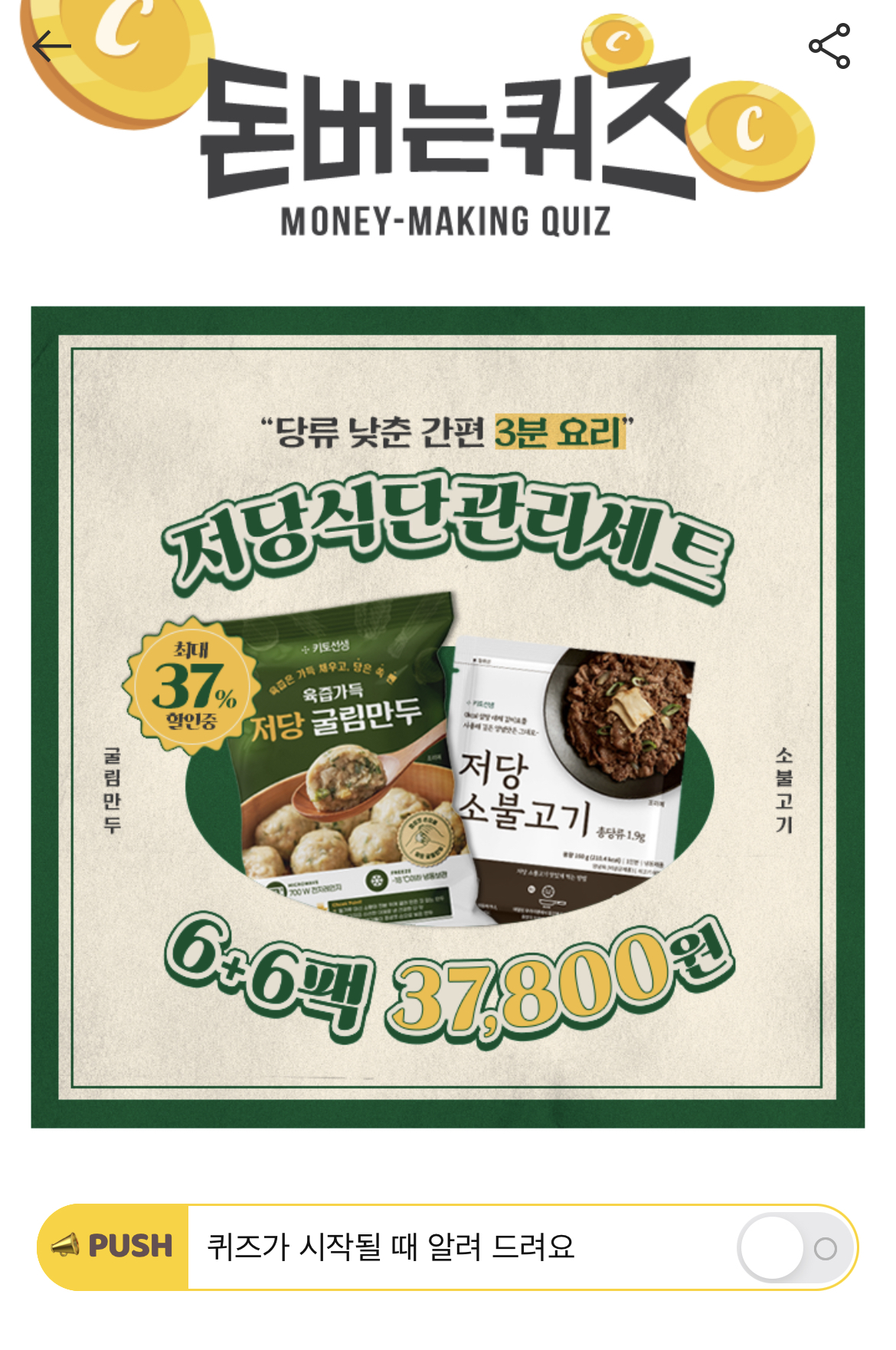 캐시워크 돈버는퀴즈 정답 키토선생 저당식단관리세트 저당소불고기