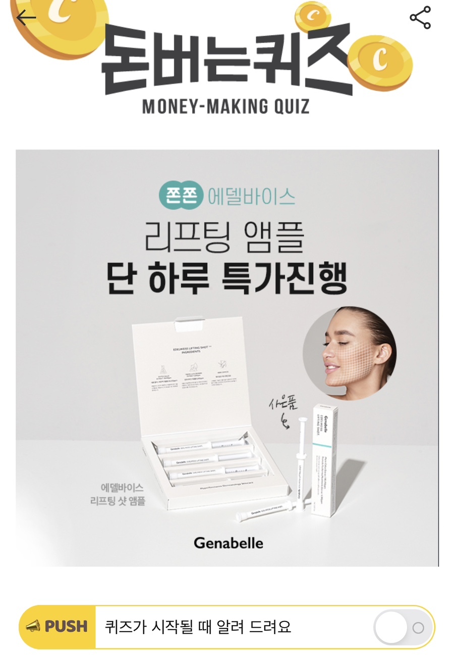 캐시워크 돈버는 퀴즈 정답 제나벨 에델바이스 리프팅 샷
