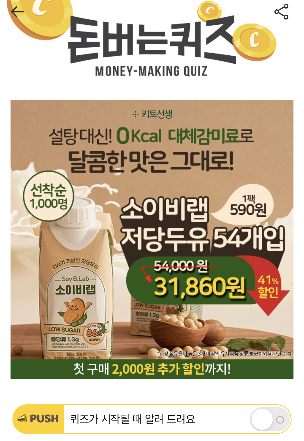 캐시워크 돈버는 퀴즈 정답 소이비랩 설탕대체감미료