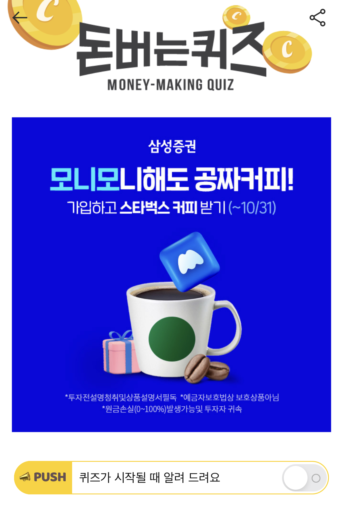 캐시워크 돈버는 퀴즈 정답 모니모 최초 설치 및 회원가입 고객 스타벅스 ㅇㅁㄹㅋㄴ 쿠폰