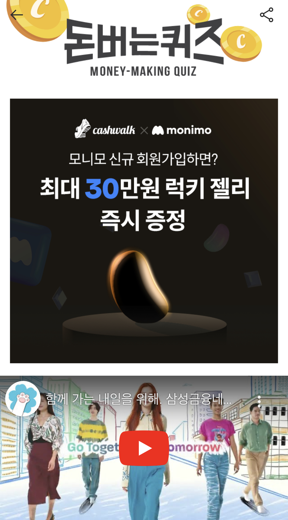 캐시워크 돈버는 퀴즈 정답 모니모 ㅅㅅㄱㅇ