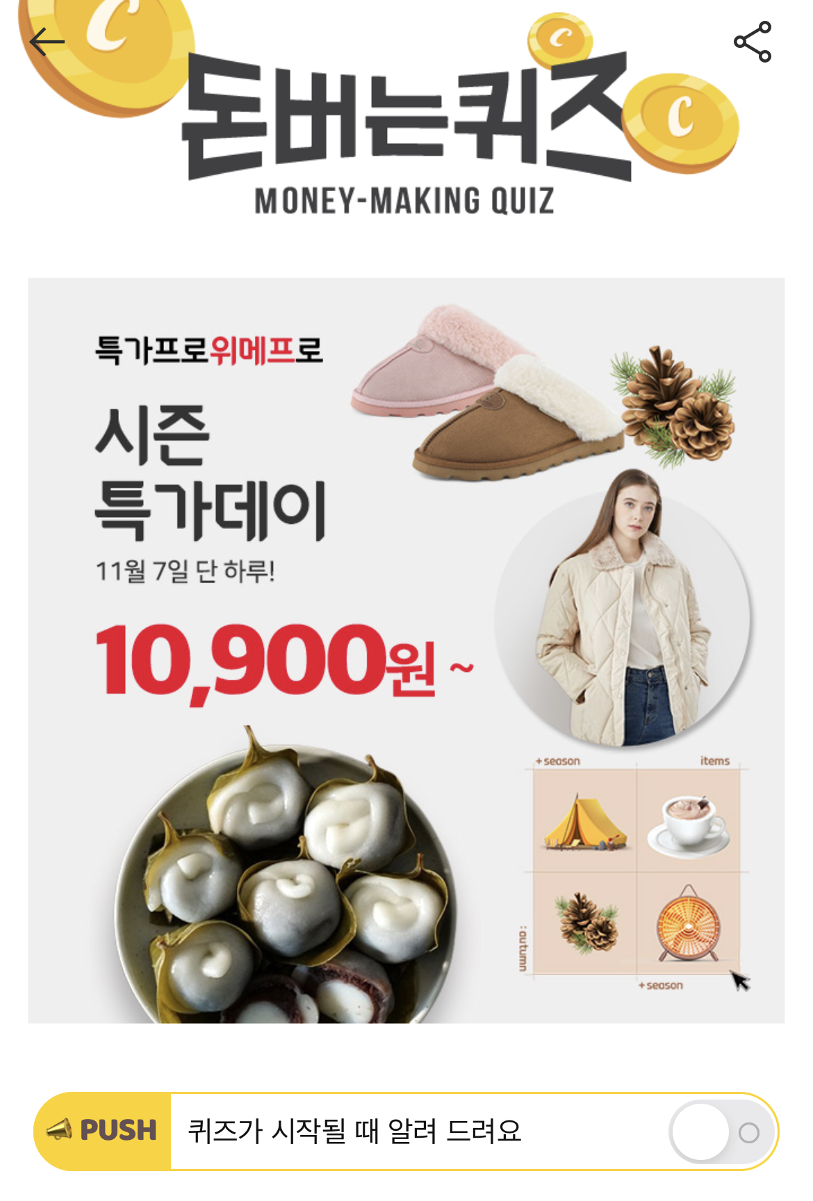 캐시워크 돈버는 퀴즈 정답 위메프 특가데이