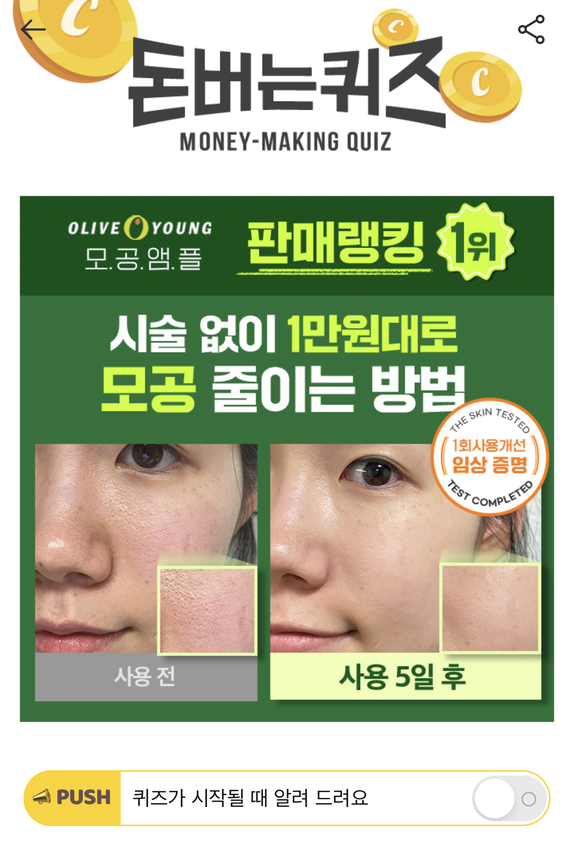 캐시워크 돈버는퀴즈 정답 성분에디터 그린토마토 앰플