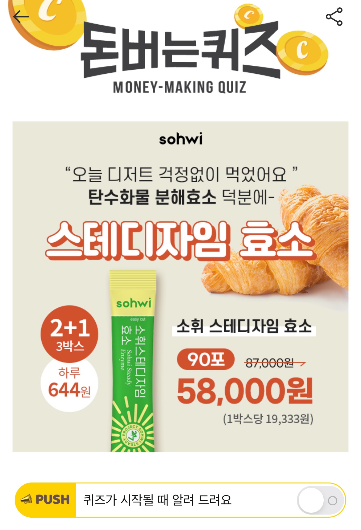 캐시워크 돈버는 퀴즈 정답 소휘 스테디자임 효소