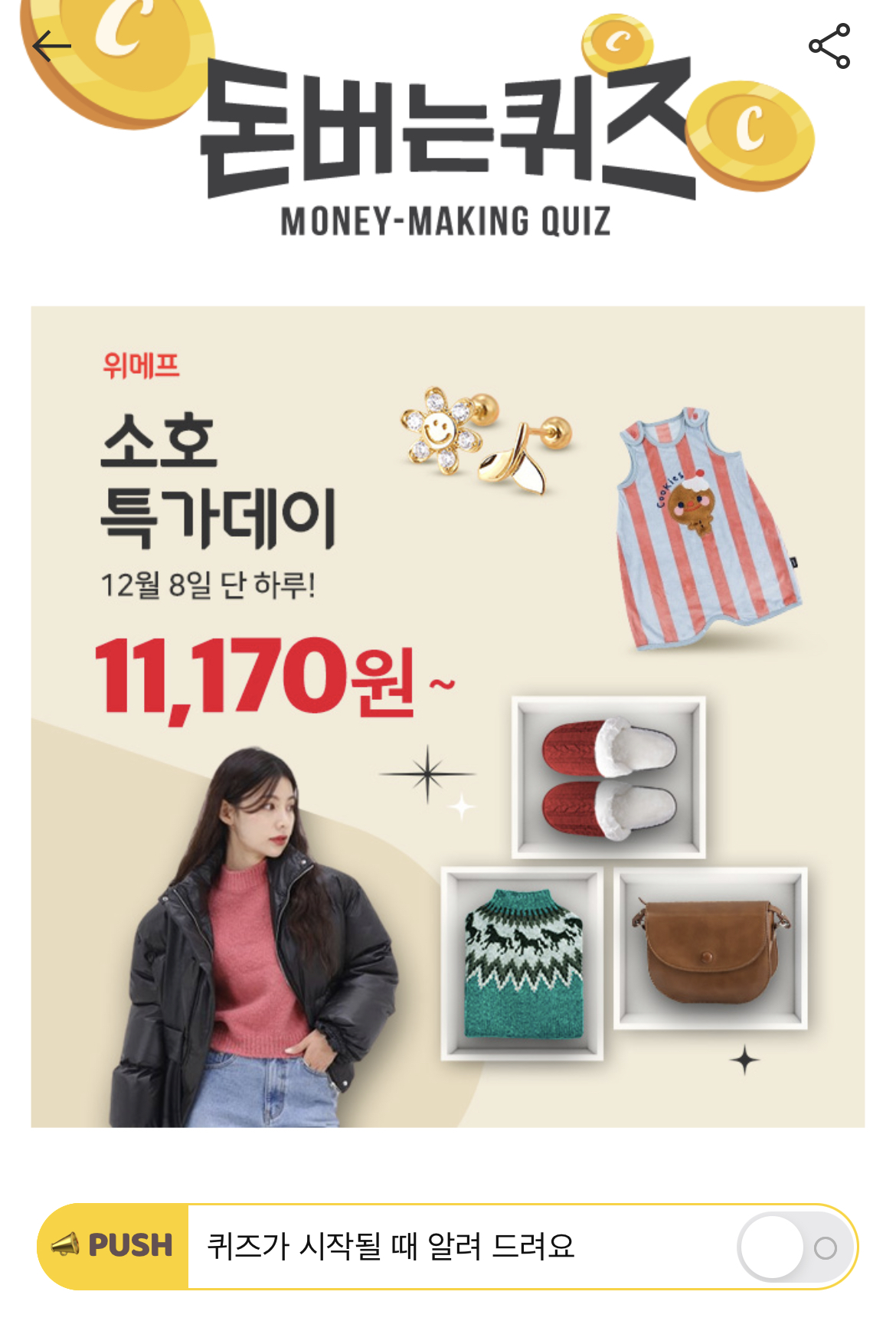 캐시워크 돈버는 퀴즈 정답 위메프 소호특가데이 ㅈㄱㄹㅋㅌㄱ