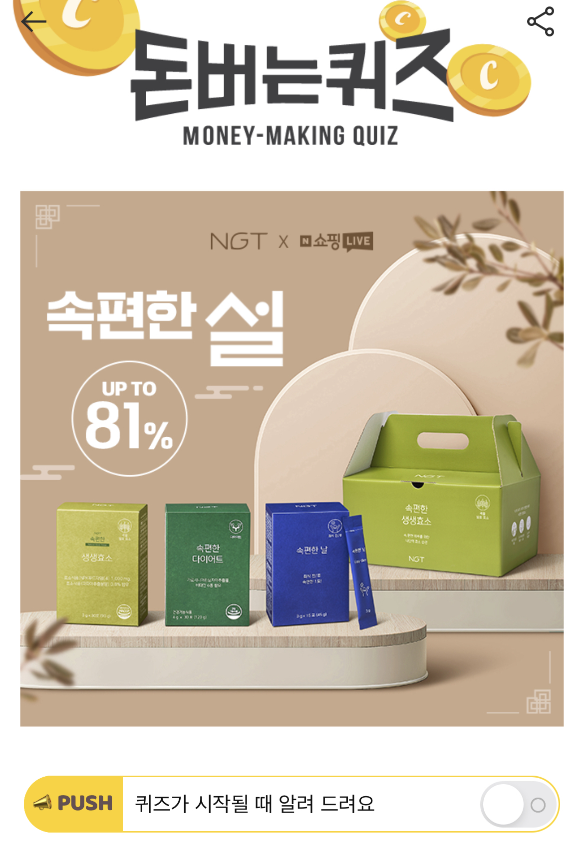 캐시워크 돈버는 퀴즈 정답 NGT 속편한 설 N쇼핑 LIVE