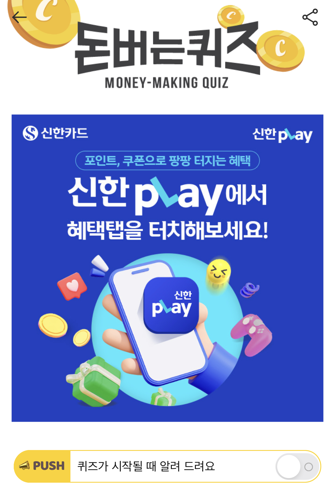 캐시워크 돈버는 퀴즈 정답 신한PLAY OOOO pLay 미션존