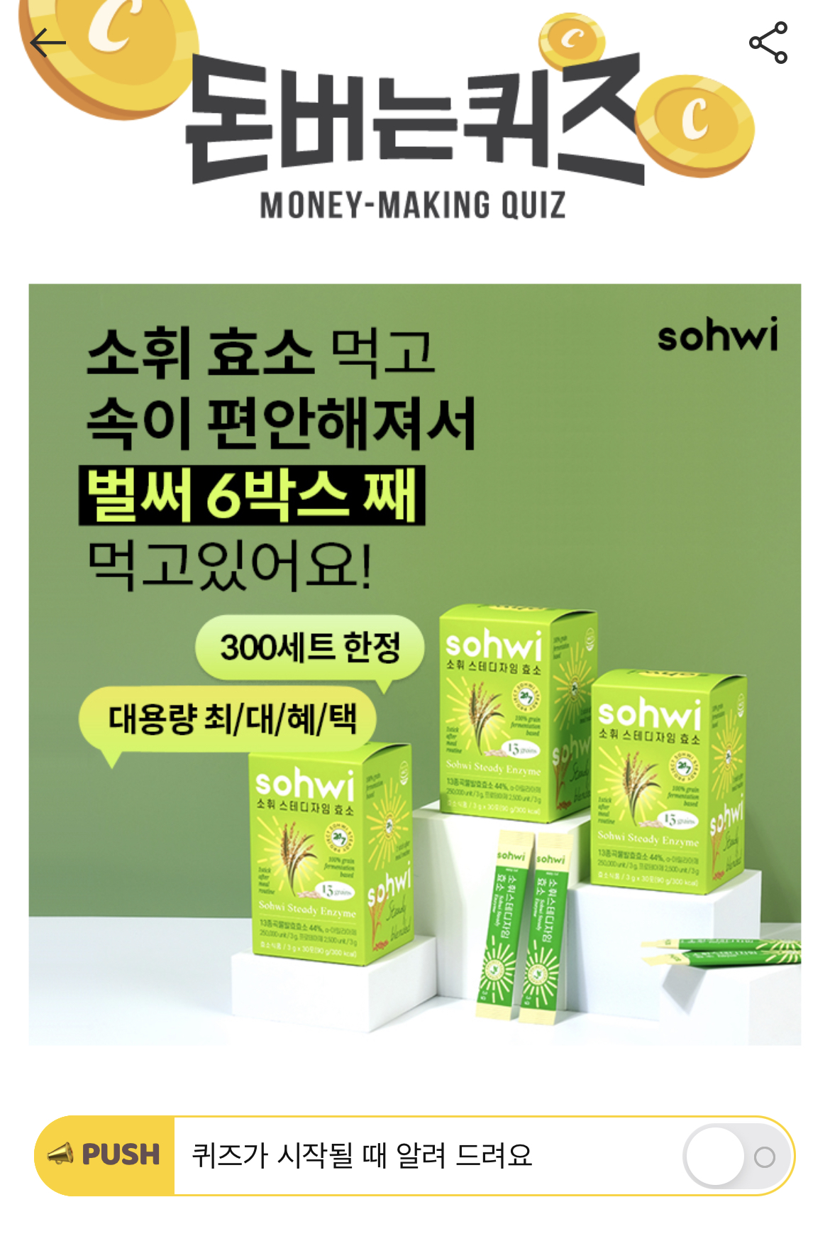 캐시워크 돈버는 퀴즈 정답 소휘 스테디자임 효소 고객 리얼 후기 고소한 OOO