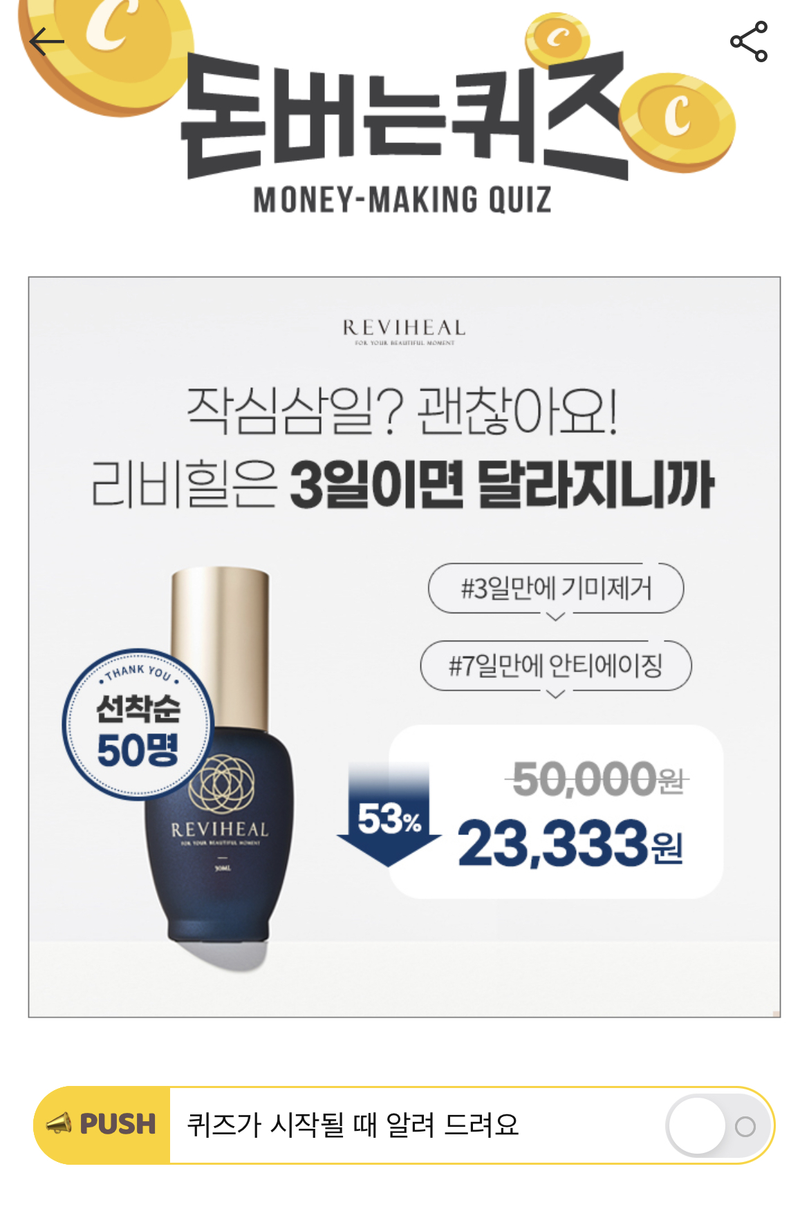 캐시워크 돈버는 퀴즈 정답 리비힐 엑소좀 스킨부스터 앰플