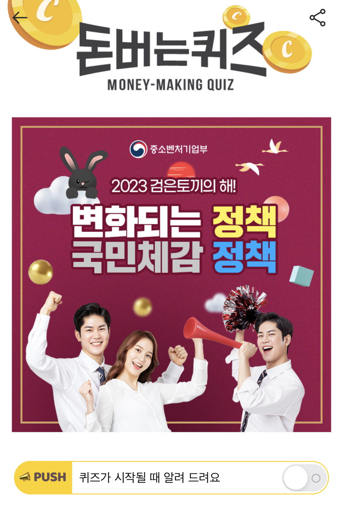 캐시워크 돈버는 퀴즈 정답 중소벤처기업부 ㅂㅊㅌㅈ