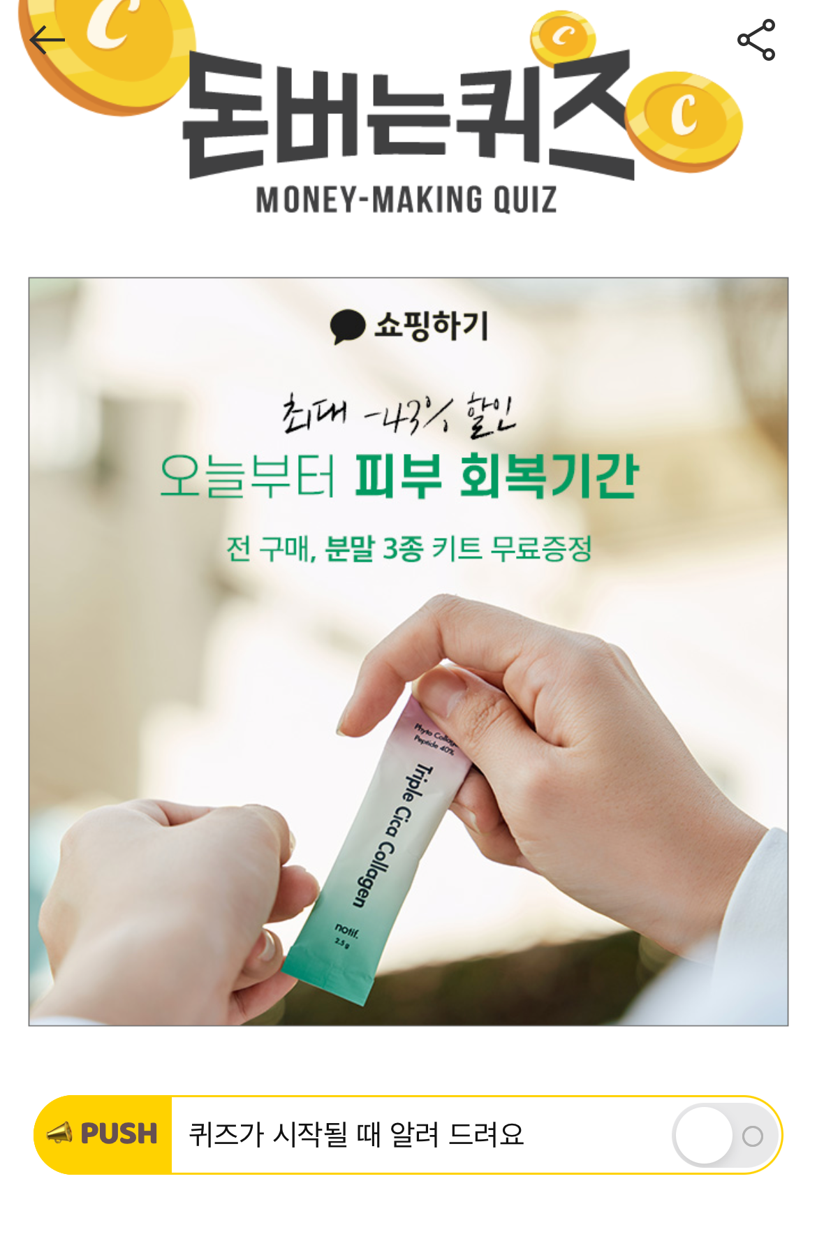 캐시워크 돈버는 퀴즈 정답 노티프 콜라겐 OOO 원료 배합