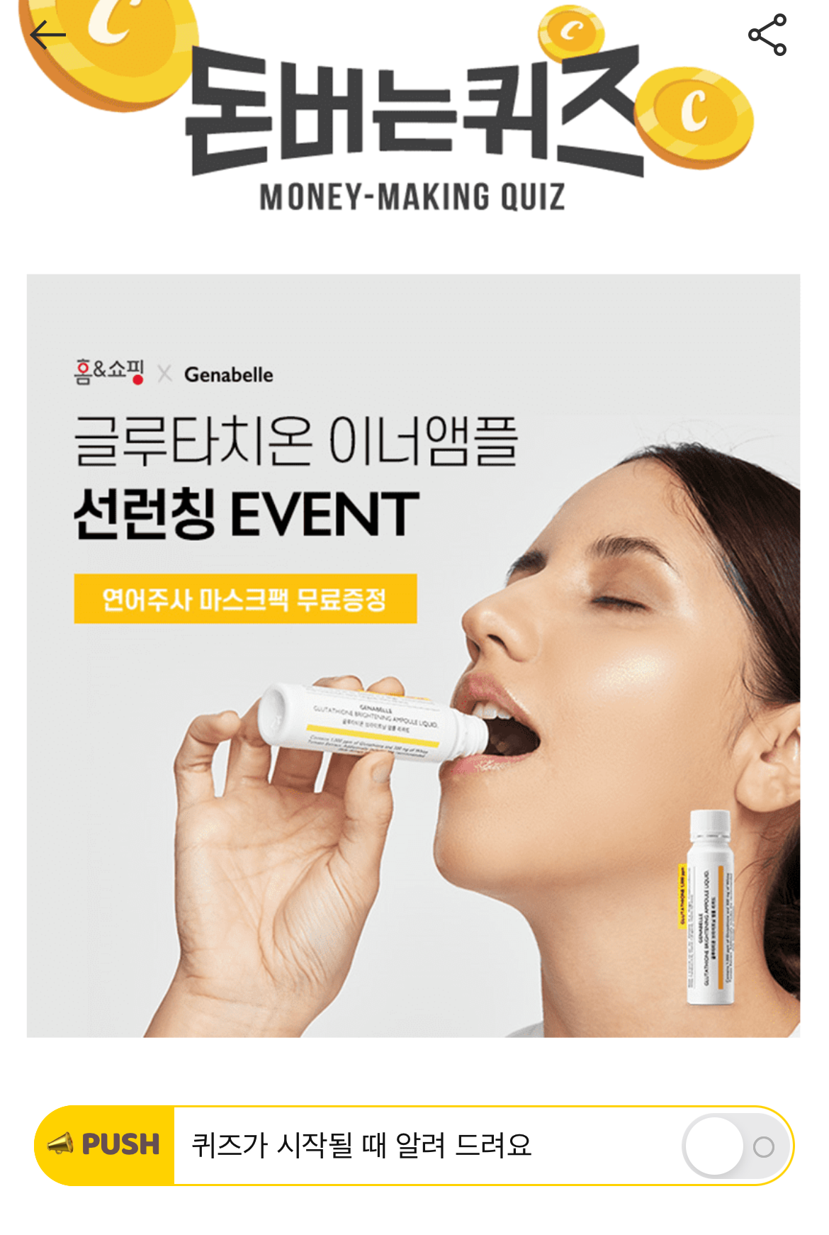 캐시워크 돈버는 퀴즈 정답 홈앤쇼핑 제나벨 글루타치온