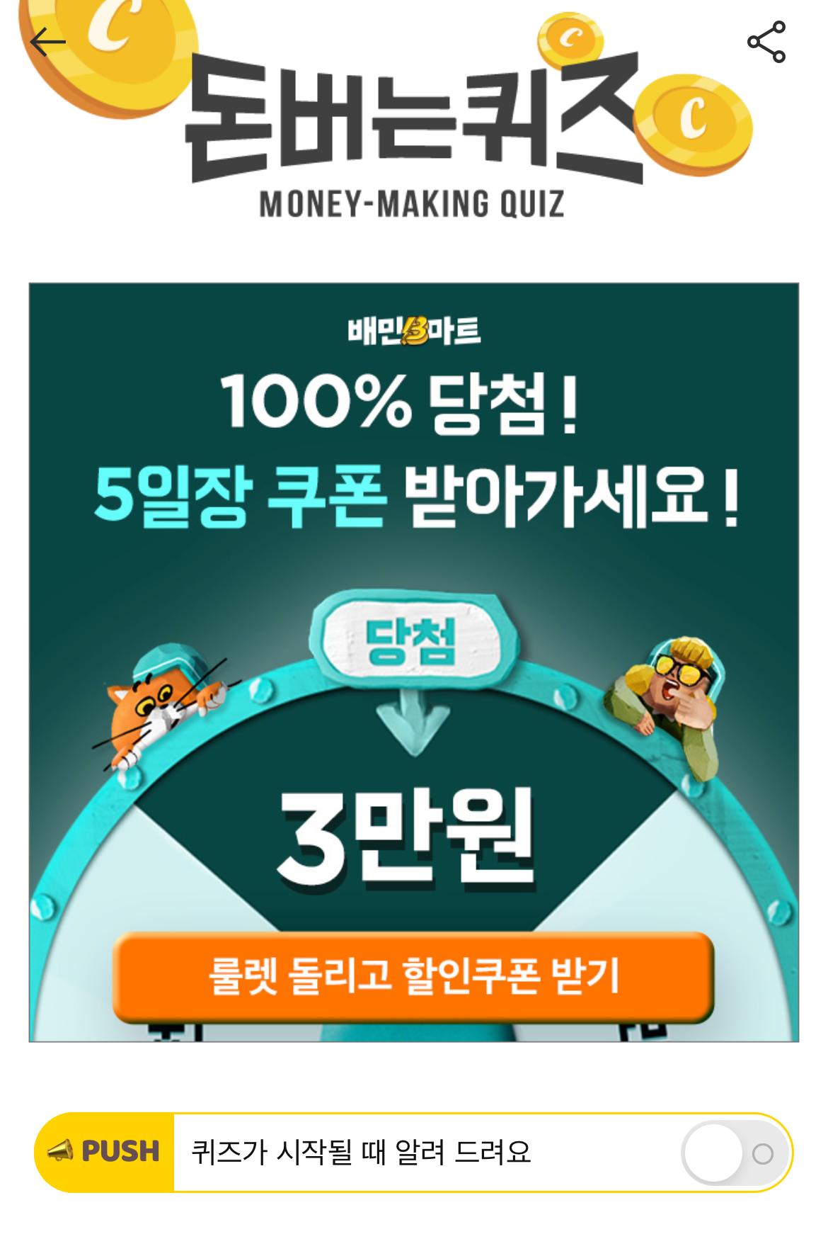캐시워크 돈버는 퀴즈 정답 배달의민족 배민B마트 O요일