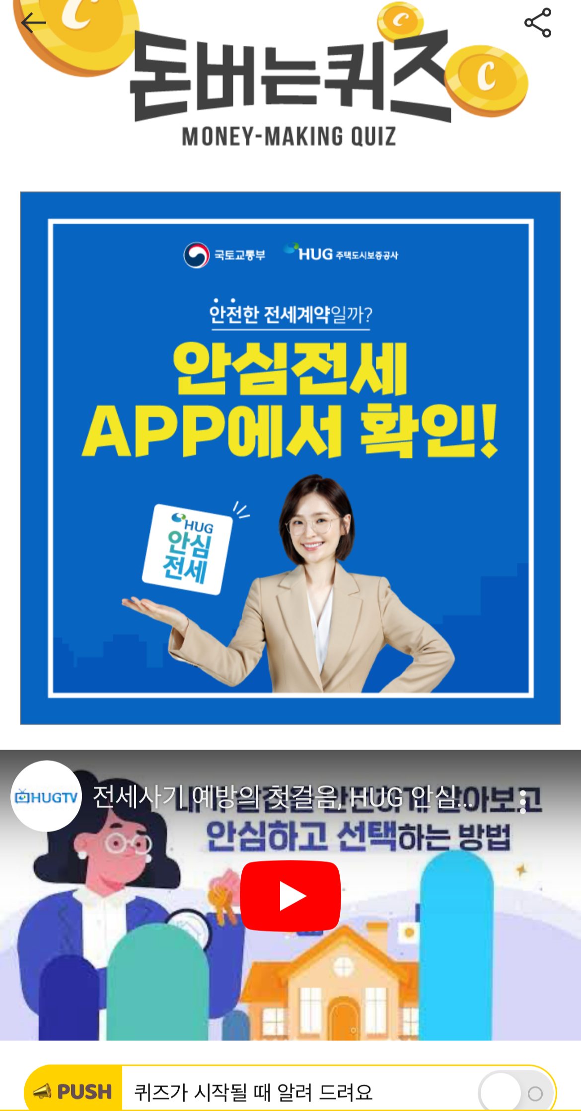 캐시워크 돈버는 퀴즈 정답 HUG 안심전세 APP