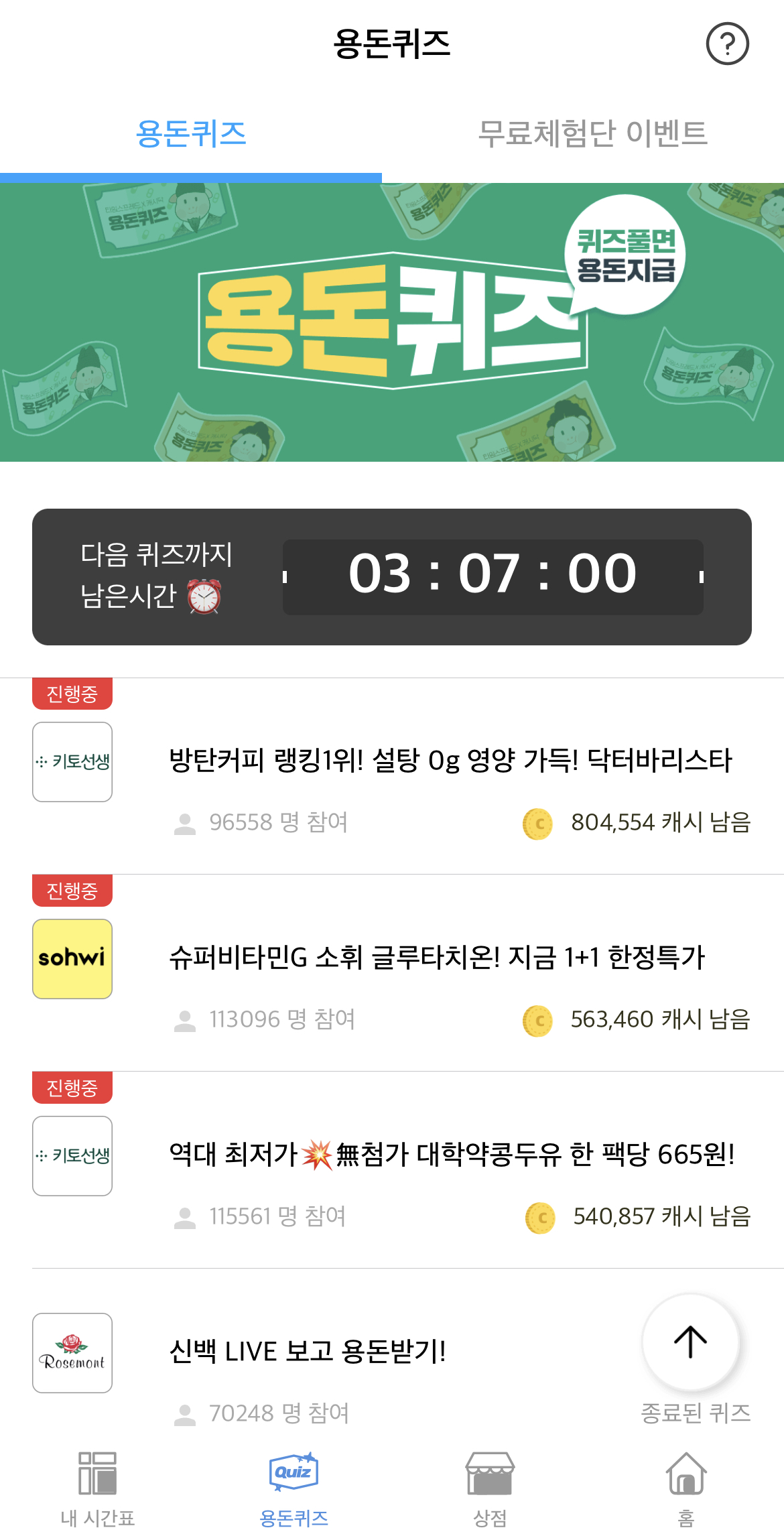 캐시닥 용돈퀴즈 정답 대학약콩두유