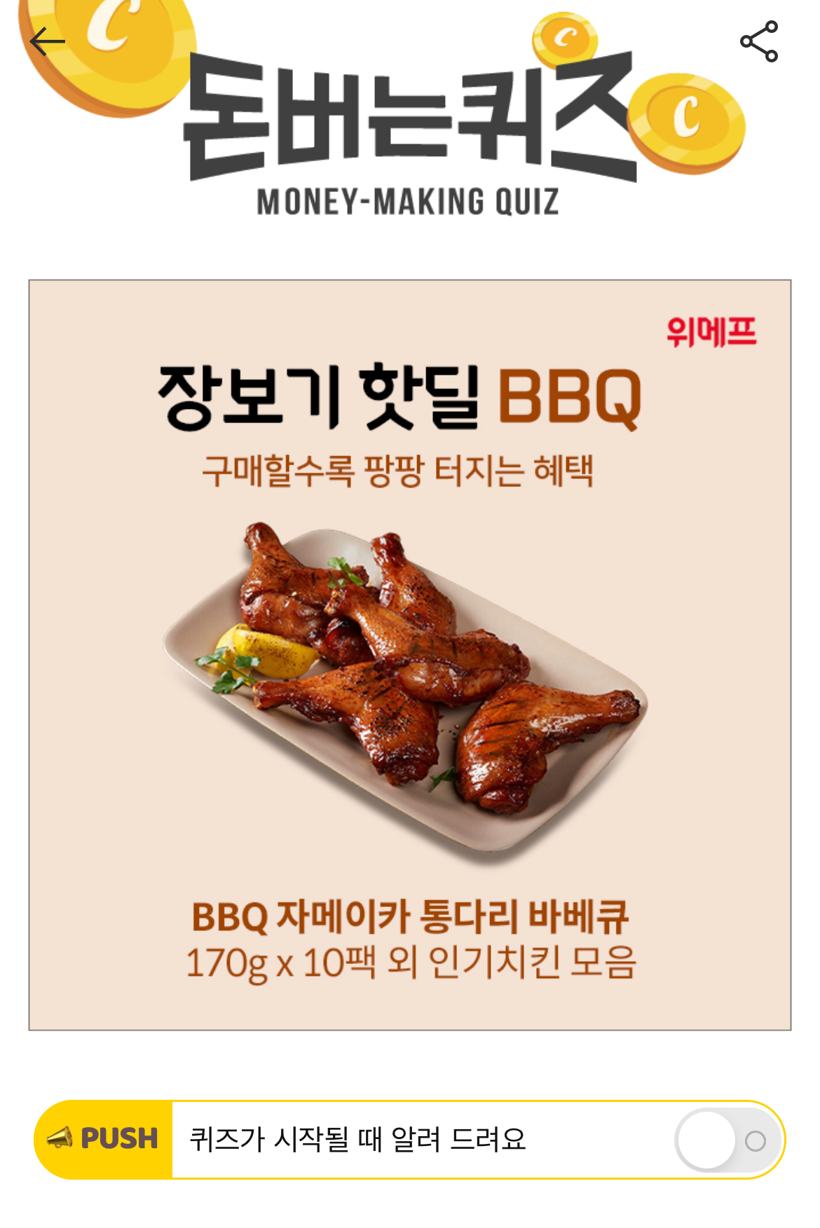 캐시워크 돈버는 퀴즈 정답 위메프 할인에 할인을 더하다 자메이카 통다리 바비큐 숫자
