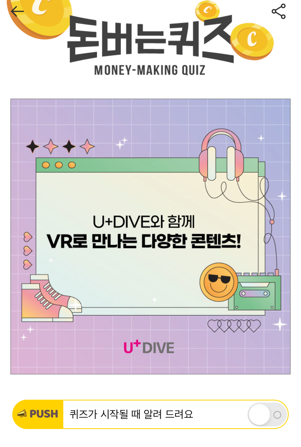 캐시워크 돈버는 퀴즈 정답 유플다이브 U+ DIVE VR