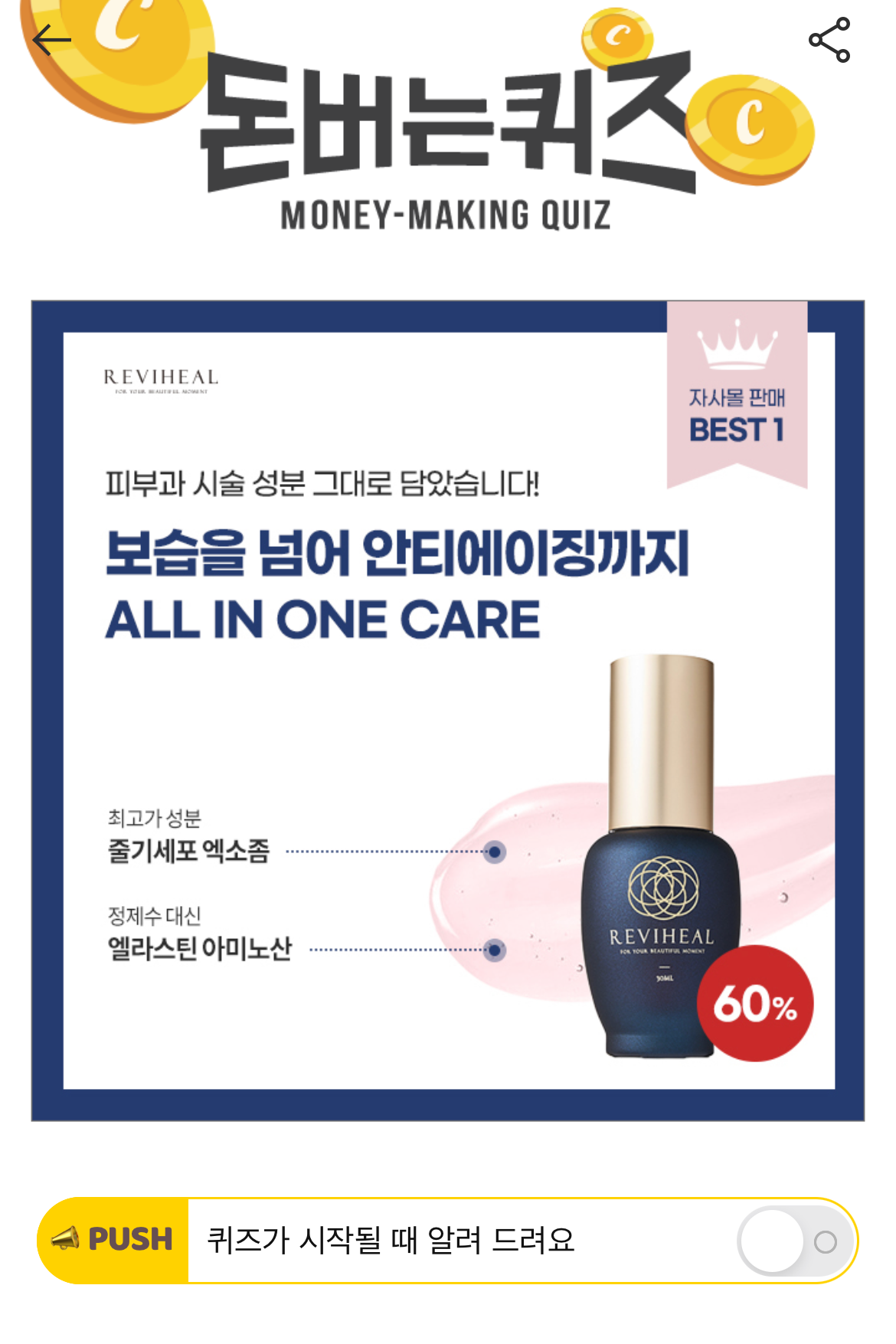 캐시워크 돈버는 퀴즈 정답 리비힐 스킨부스터 엑소좀 피부과 앰플