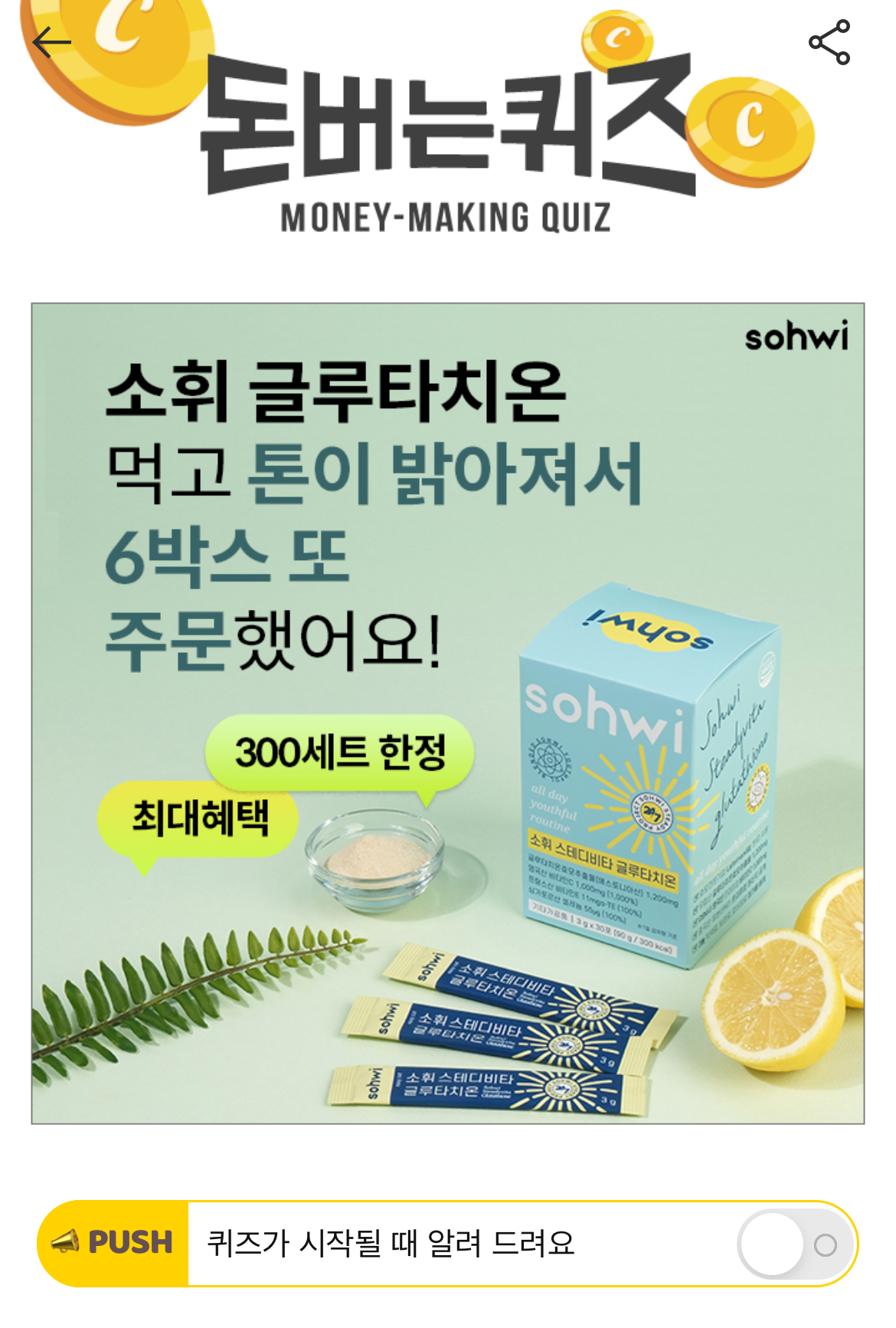 캐시워크 돈버는 퀴즈 정답 소휘 글루타치온 ㅇㅇㅅ