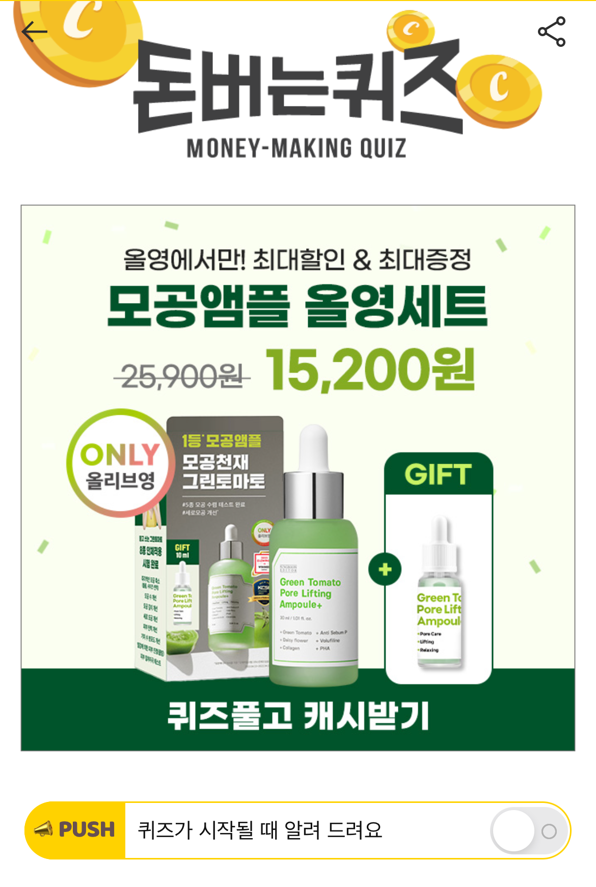 캐시워크 돈버는 퀴즈 정답 성분에디터 그린토마토 포어 리프팅 앰플