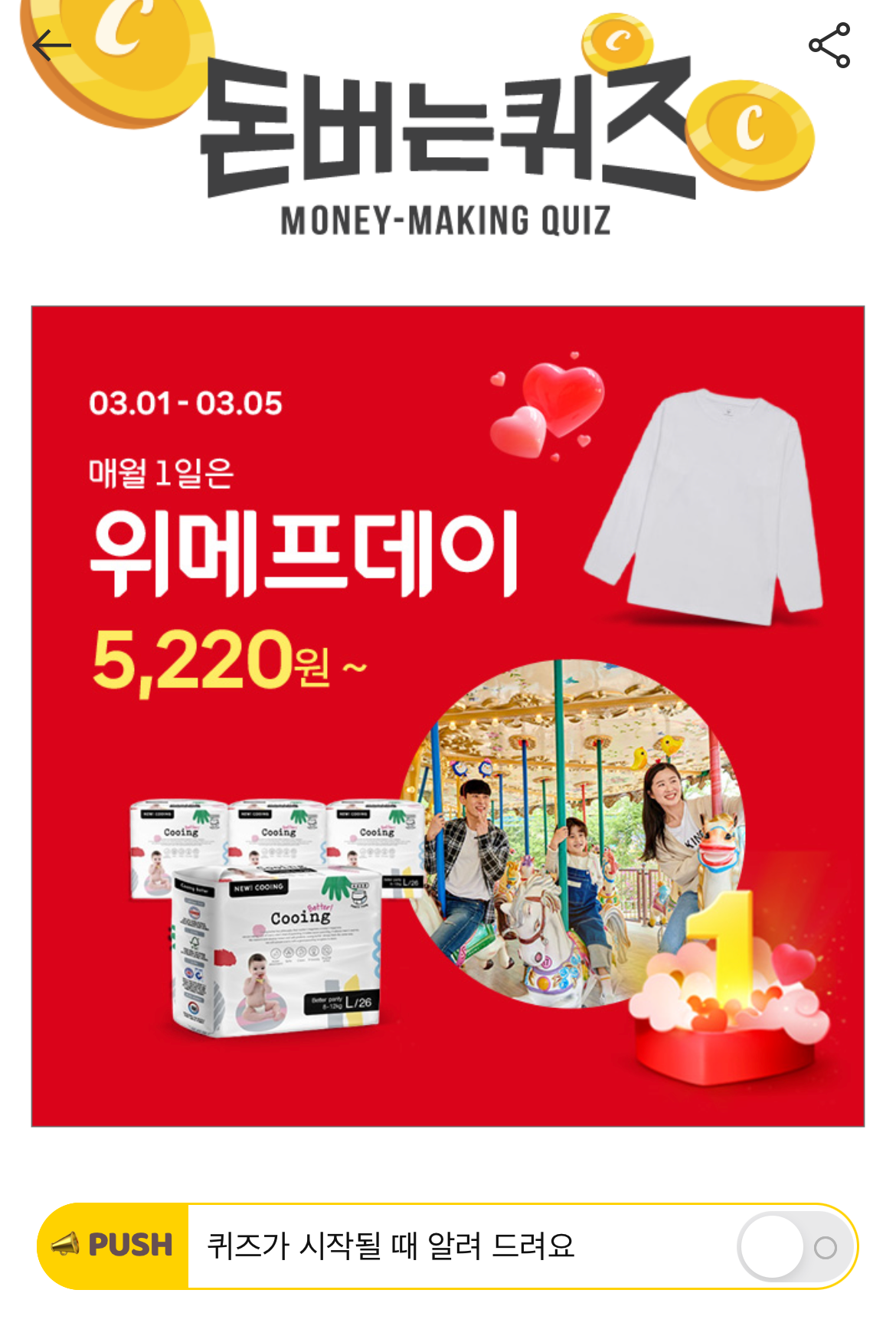 캐시워크 돈버는 퀴즈 정답 위메프 매월 1일 위메프데이 BEST3 OOOO별 인기상품