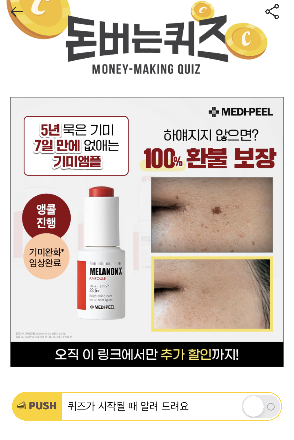 캐시워크 돈버는 퀴즈 정답 메디필 멜라논엑스X앰플 임삼시험 숫자