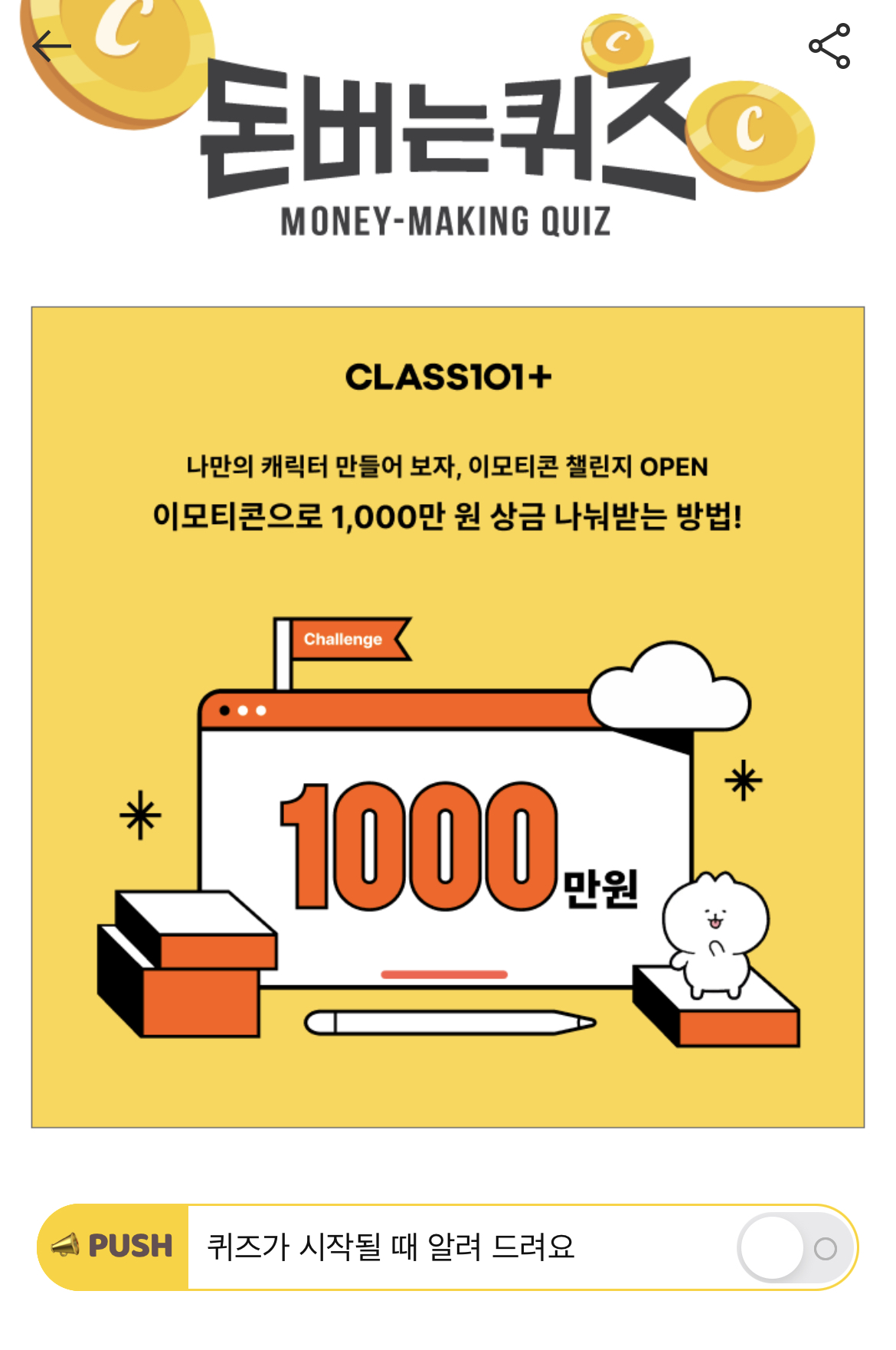 캐시워크 돈버는 퀴즈 정답 클래스101 이모티콘 챌린지 단어
